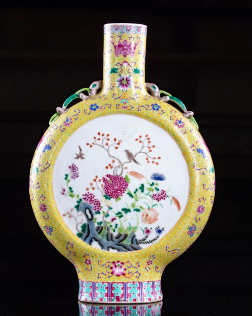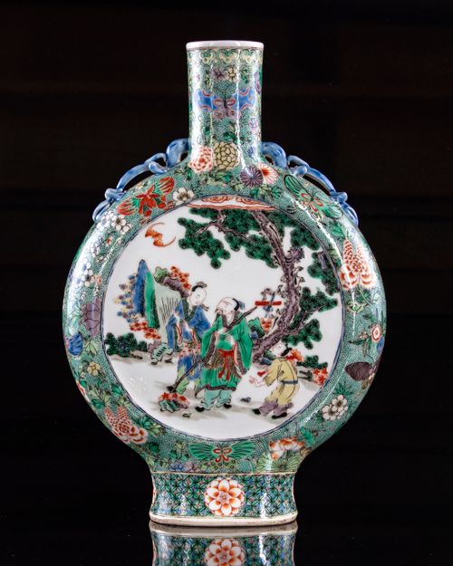 A Chinese famille verte pear shaped vase 'yuhuchunping'