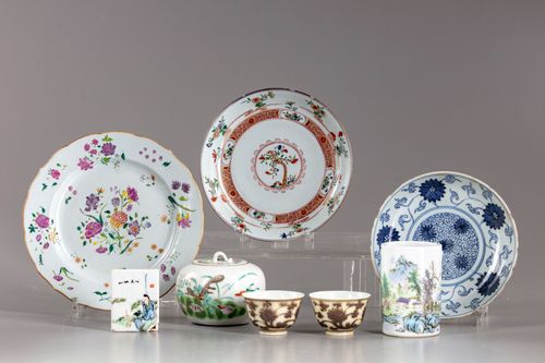 A Chinese famille rose ‘bird and flower’ cup and saucer
