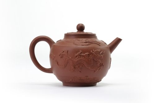 A Chinese yixing 'dragon and phoenix' teapot and cover