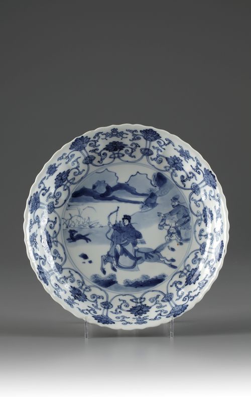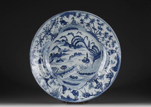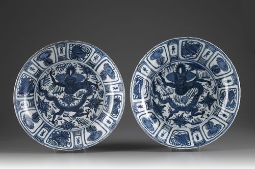 Two Blue and White Kraak Porcelain Dragon Chargers
