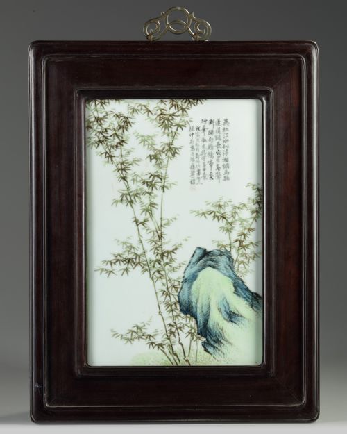 A Chinese famille rose 'bamboo' plaque