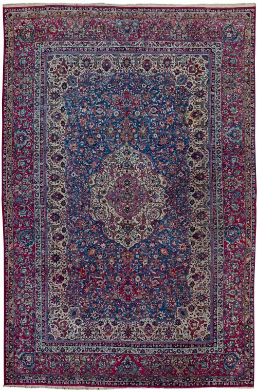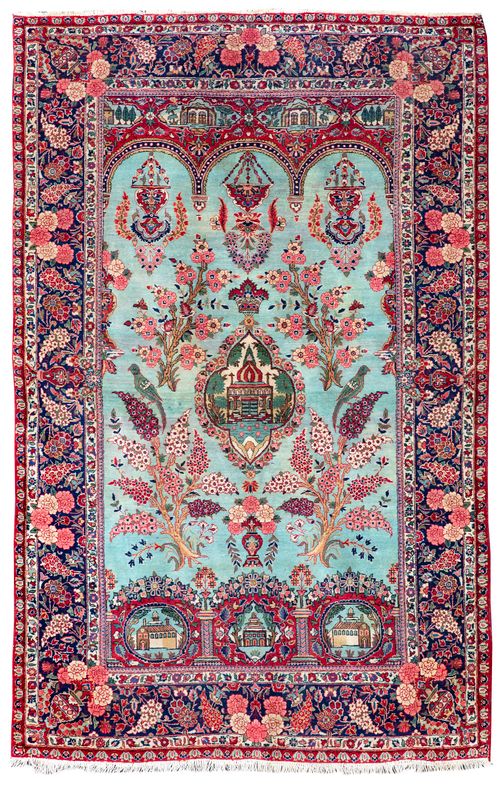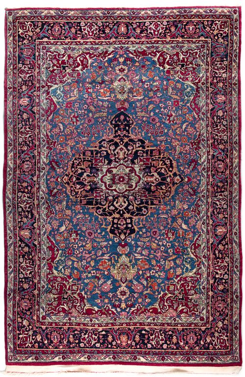A PERSIAN KASHAN RUG, LIGHT BLUE BACKGROUND, CA. 1920