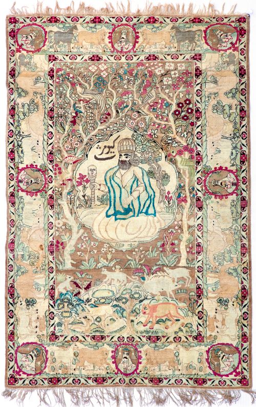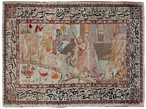 A PERSIAN KIRMAN RAWER PICTURAL RUG, 19TH CENTURY