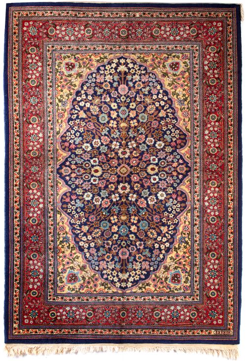 A KASHAN RUG WITH SILK, CIRCA 1920