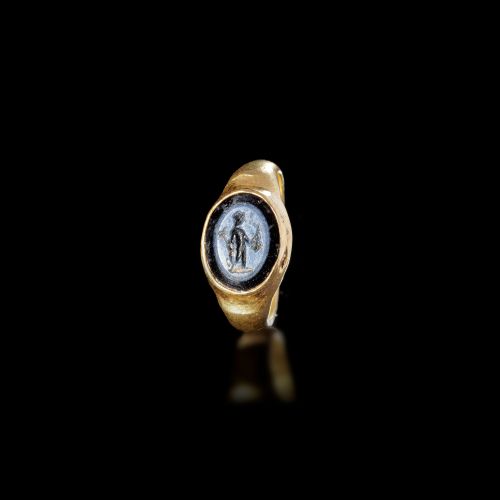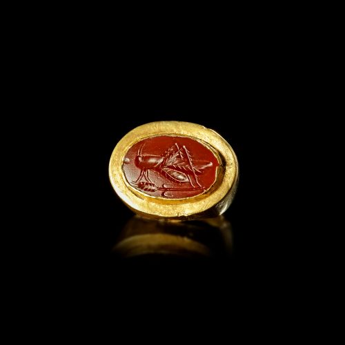 A ROMAN GOLD RING WITH AN INTAGLIO, 1ST-2ND CENTURY AD