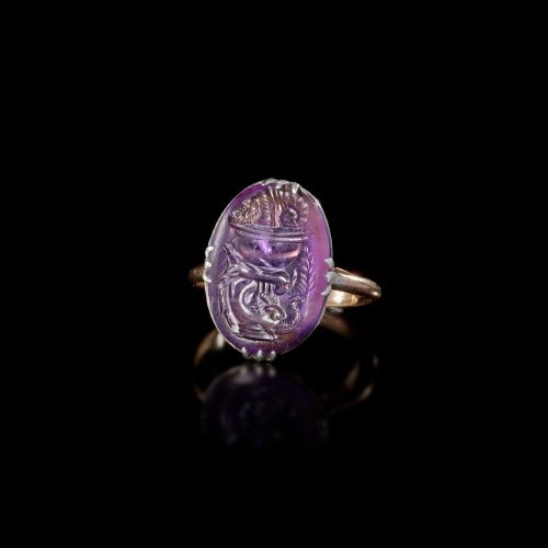 A PALEO CHRISTIAN GOLD RING WITH AN AMETHYST INTAGLIO, 4TH CENTURY AD