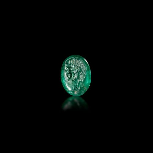 AN EMERALD INTAGLIO SHOWING THE BUST OF A MAN, 1ST CENTURY BC