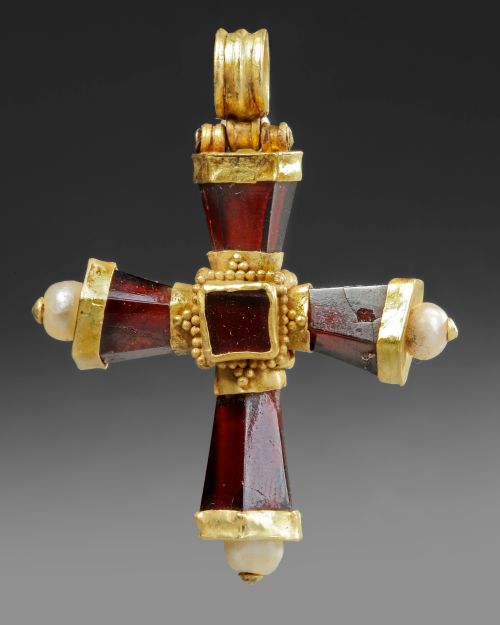 A BYZANTINE CROSS OF GARNET AND GOLD, 6TH-7TH CENTURY AD