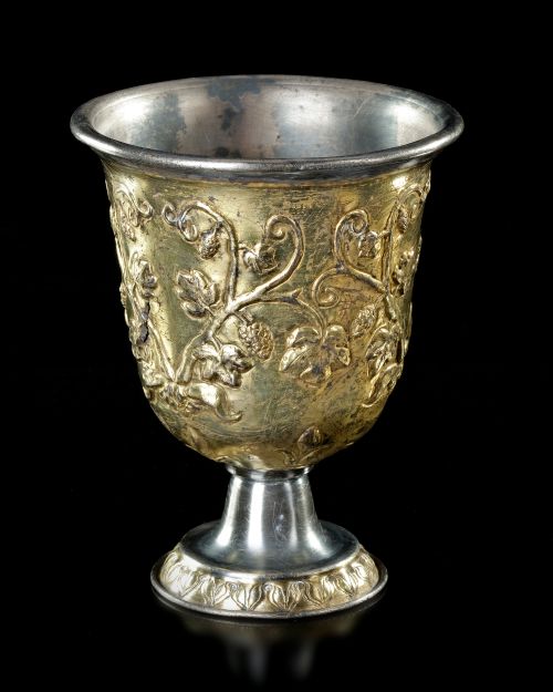 A PARCEL GILT SILVER PEDESTAL CUP, 4TH CENTURY AD
