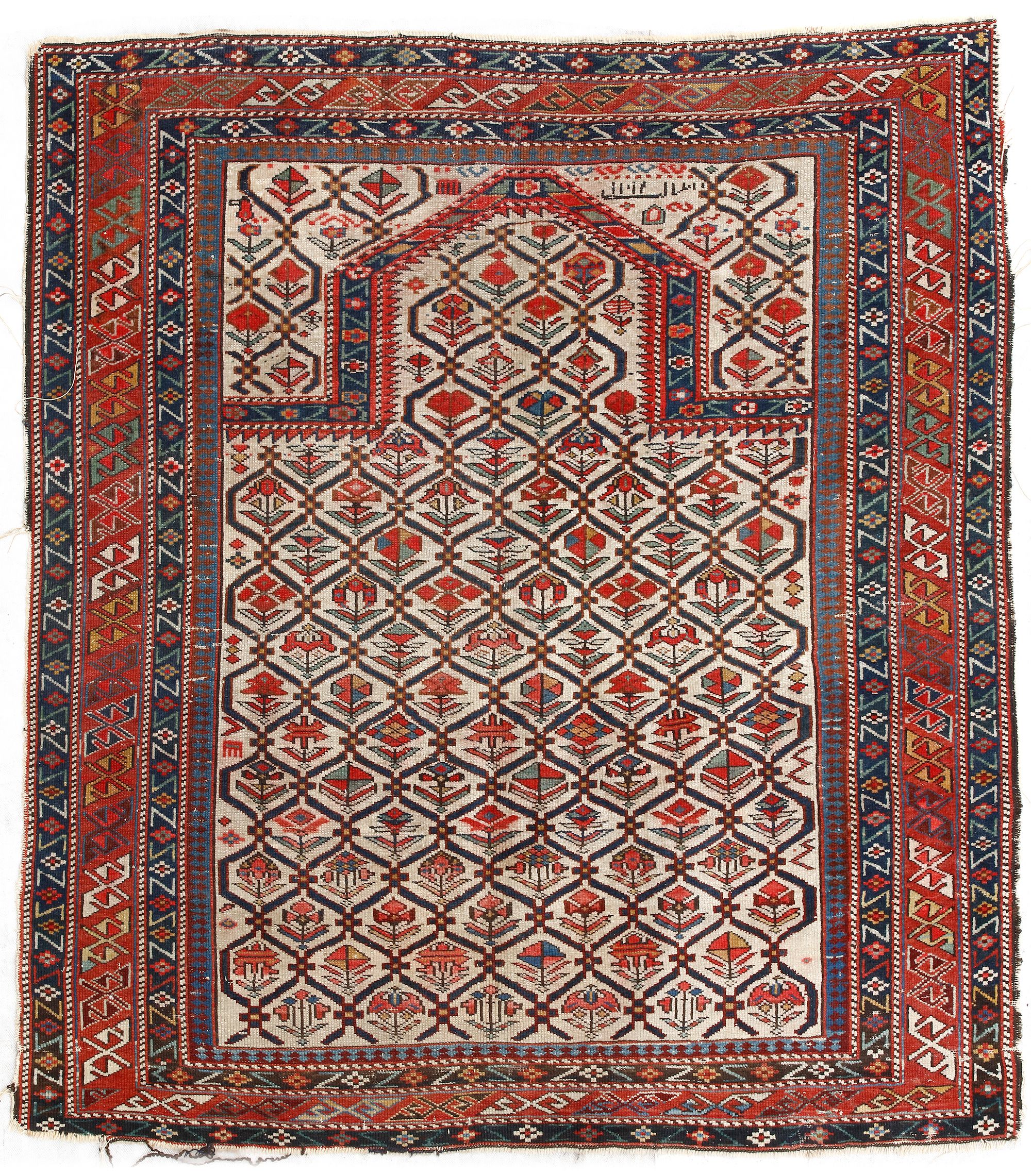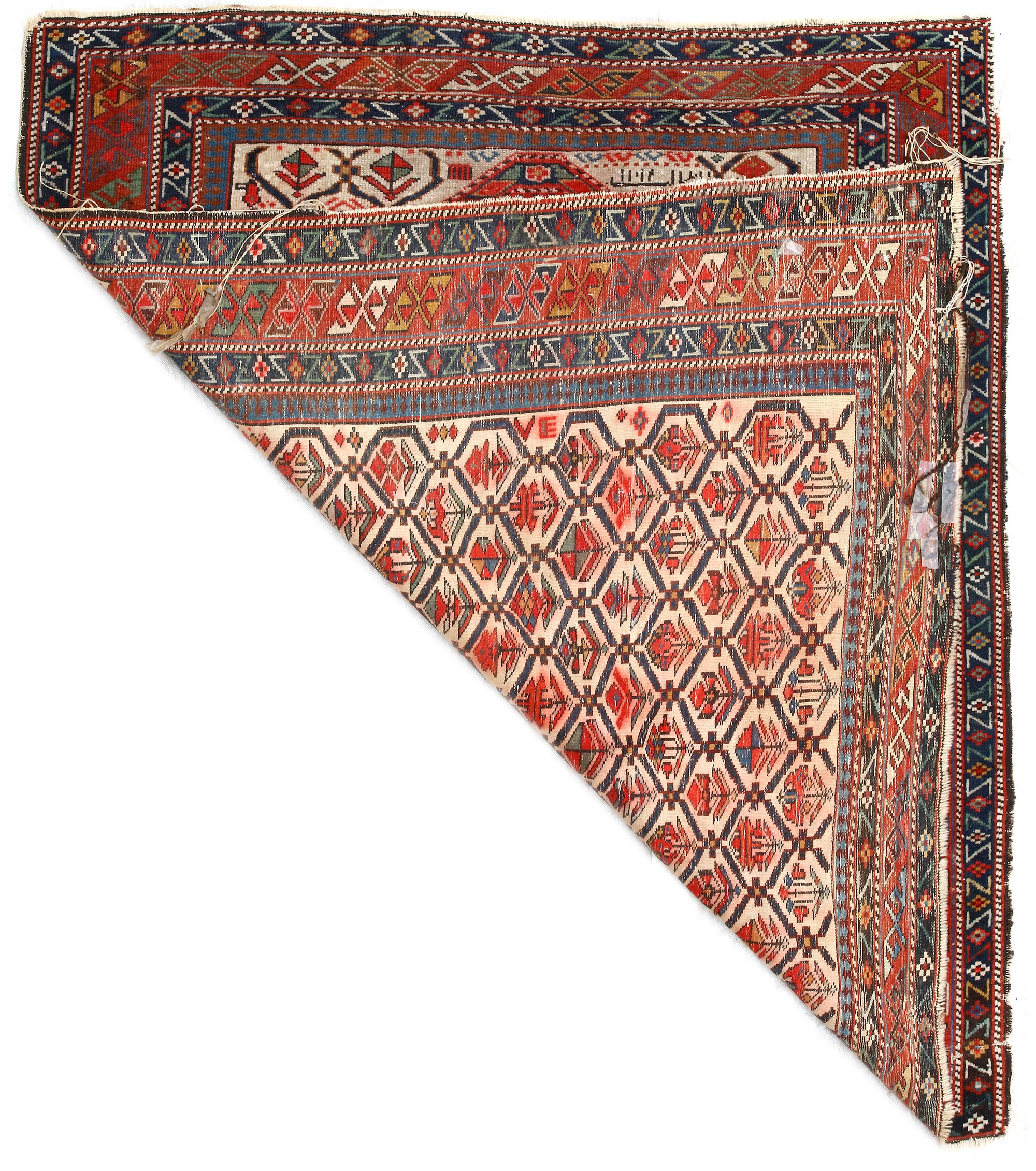 127 by 110 cm. Condition: part of one end missing, dirty and needs restoration