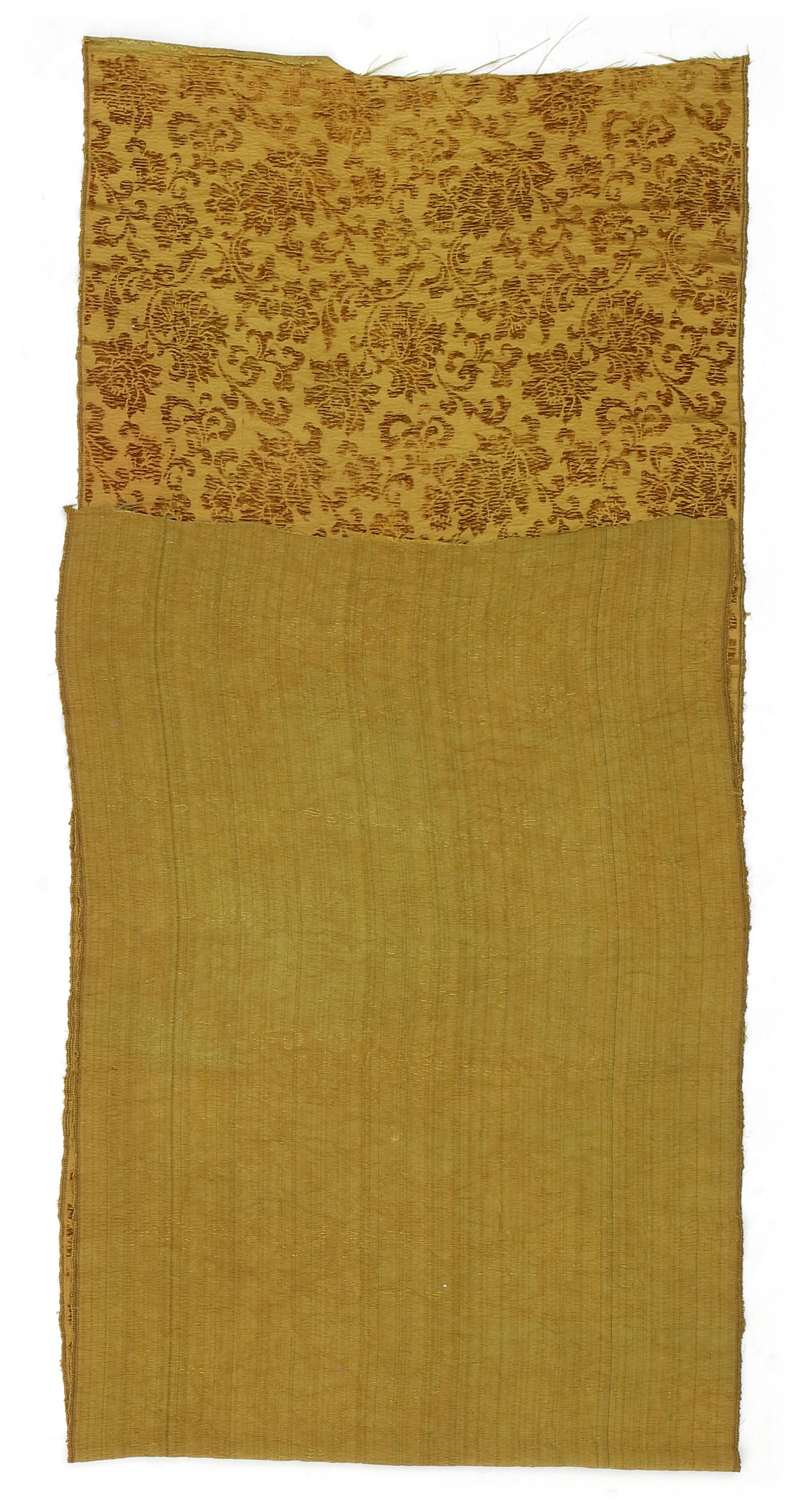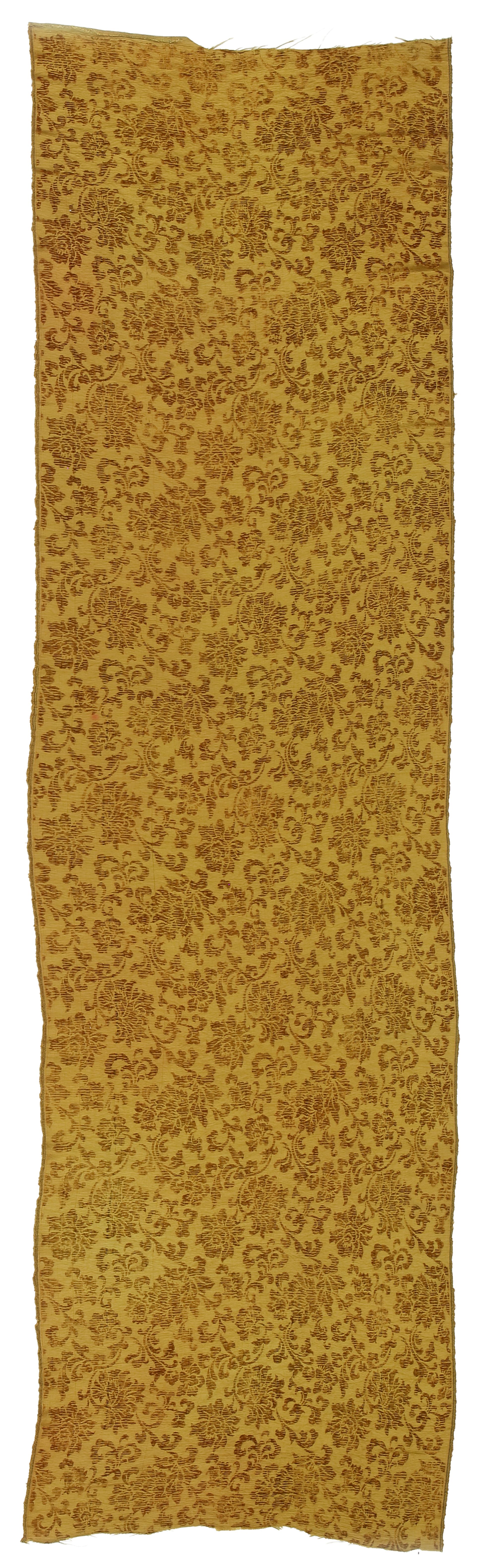 A fine Chinese silk brocade panel, woven in rich imperial yellow with an intricate floral and foliate pattern throughout. ca. 255 by 75 cm.