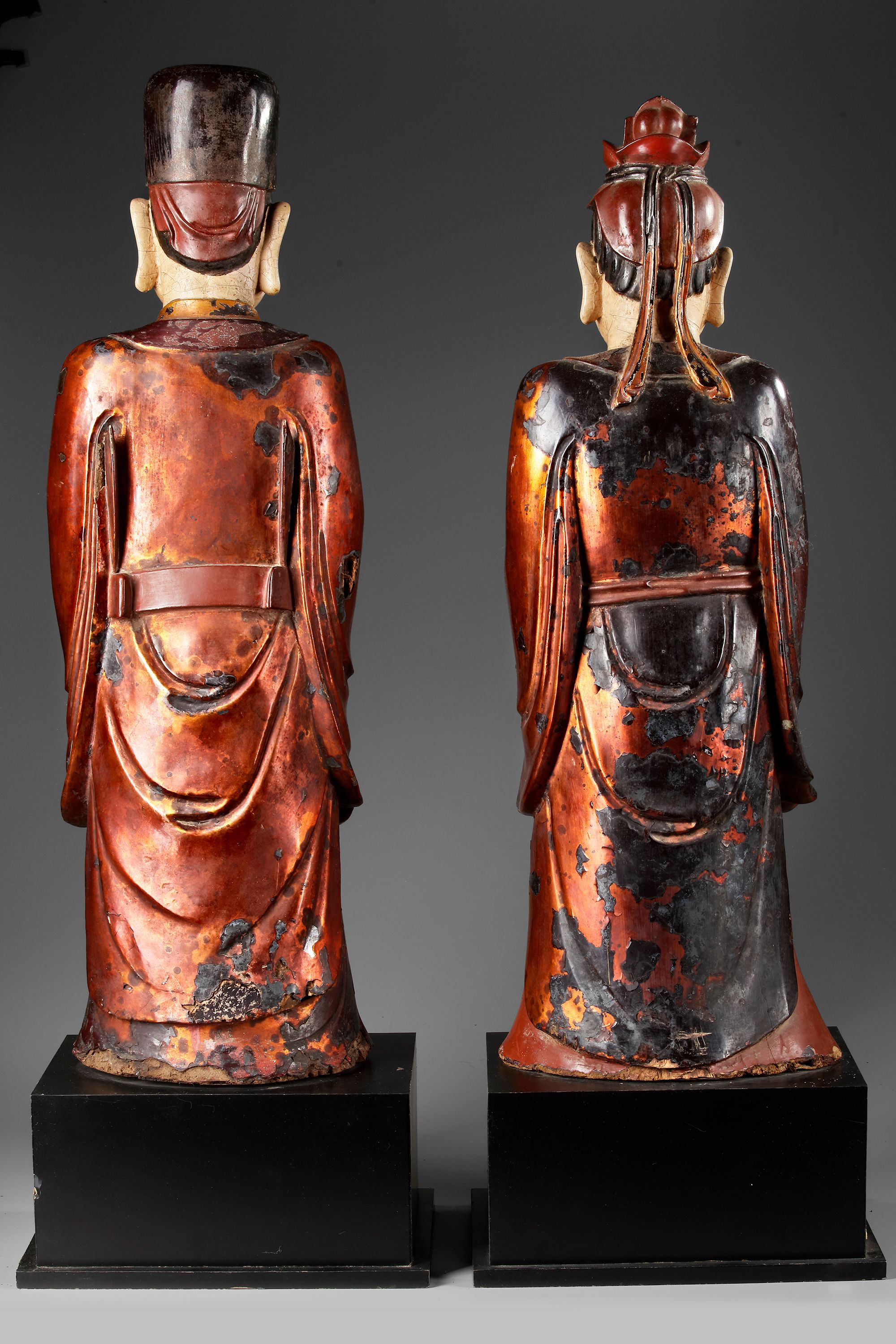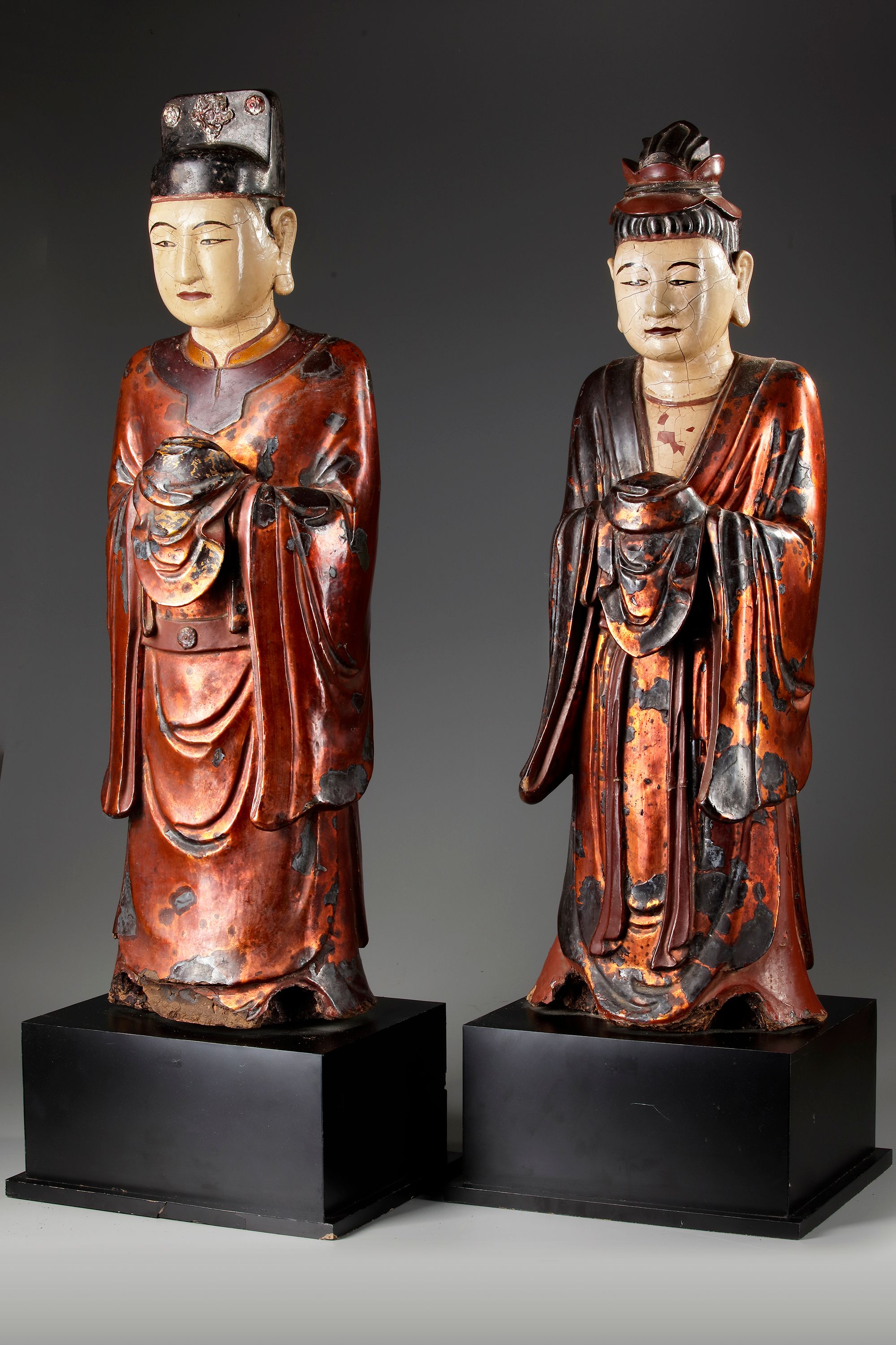 Lot 378A PAIR OF LARGE CHINESE WOODEN FIGURES, 19TH CENTURY
