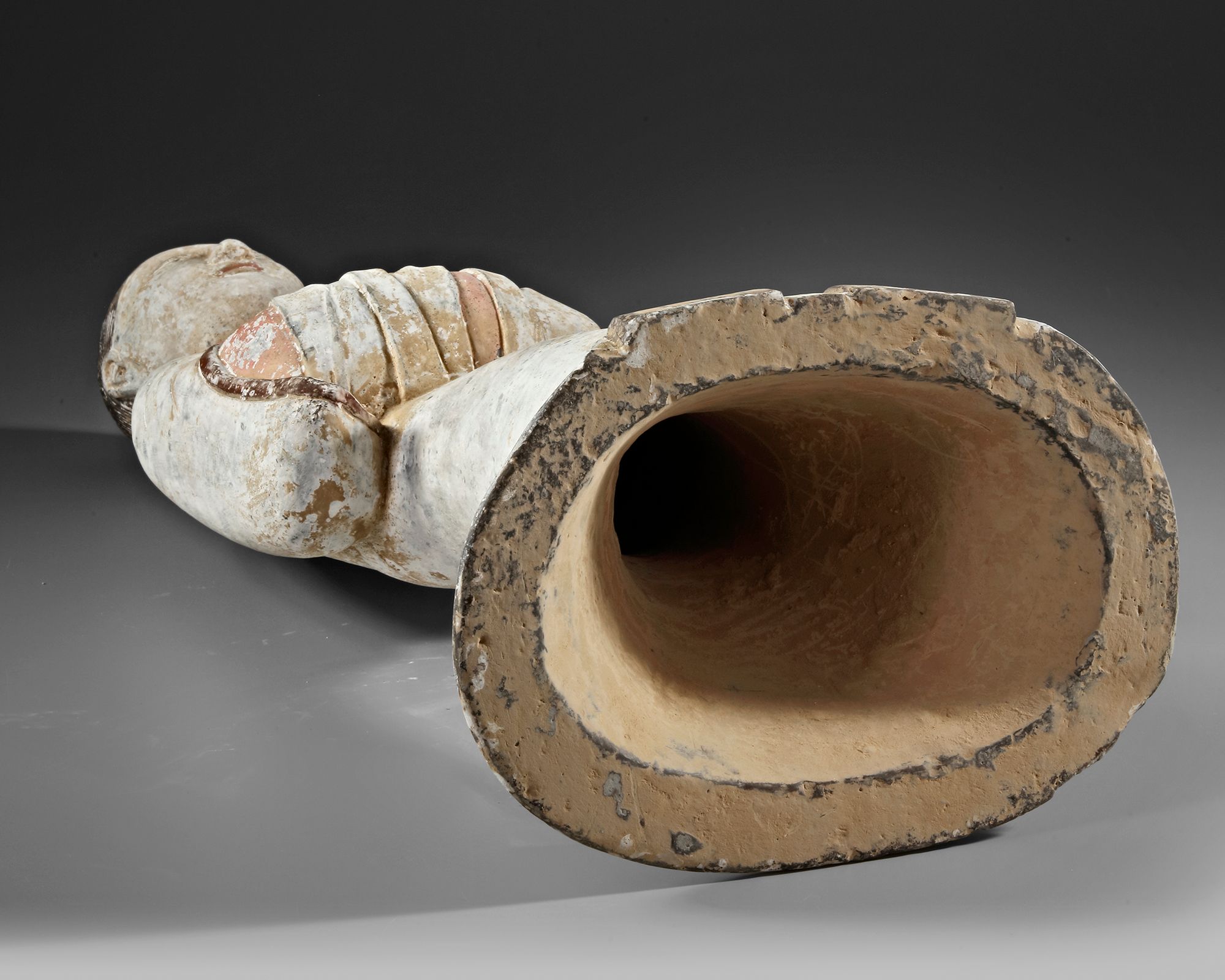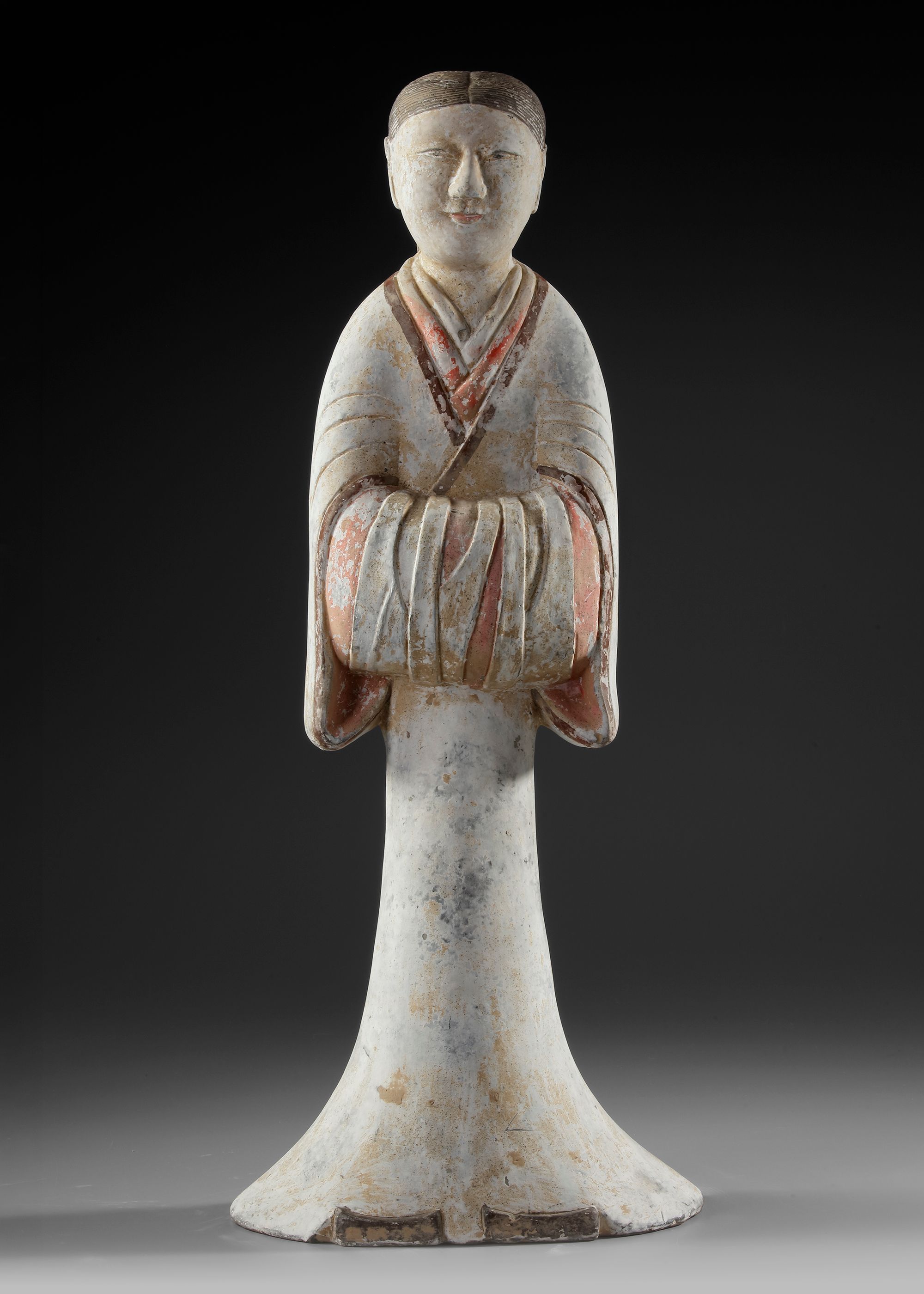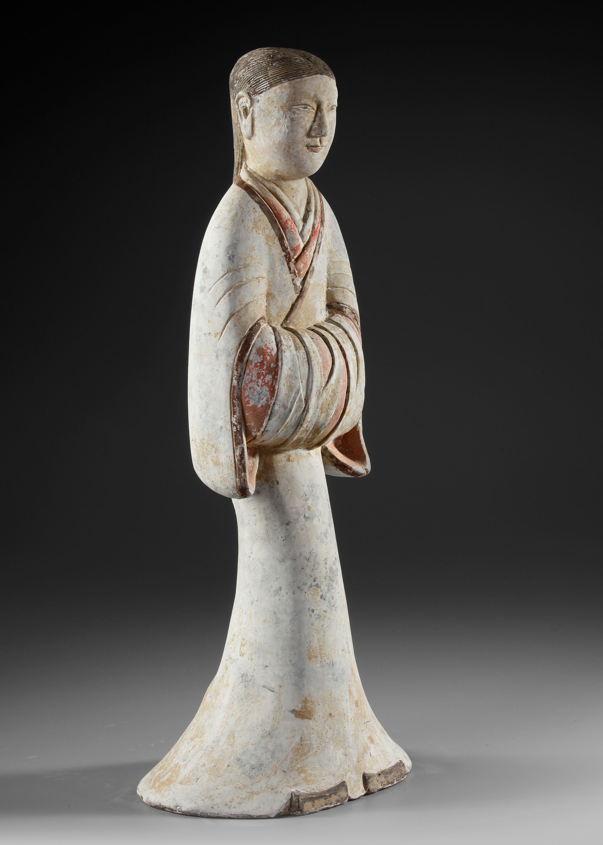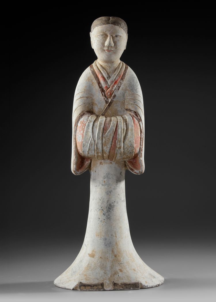 H. 59 cm. Wearing a long typical robe, with sleeves folded in front. Height Oxford TL tested. Provenance: Private collection, The Netherlands.