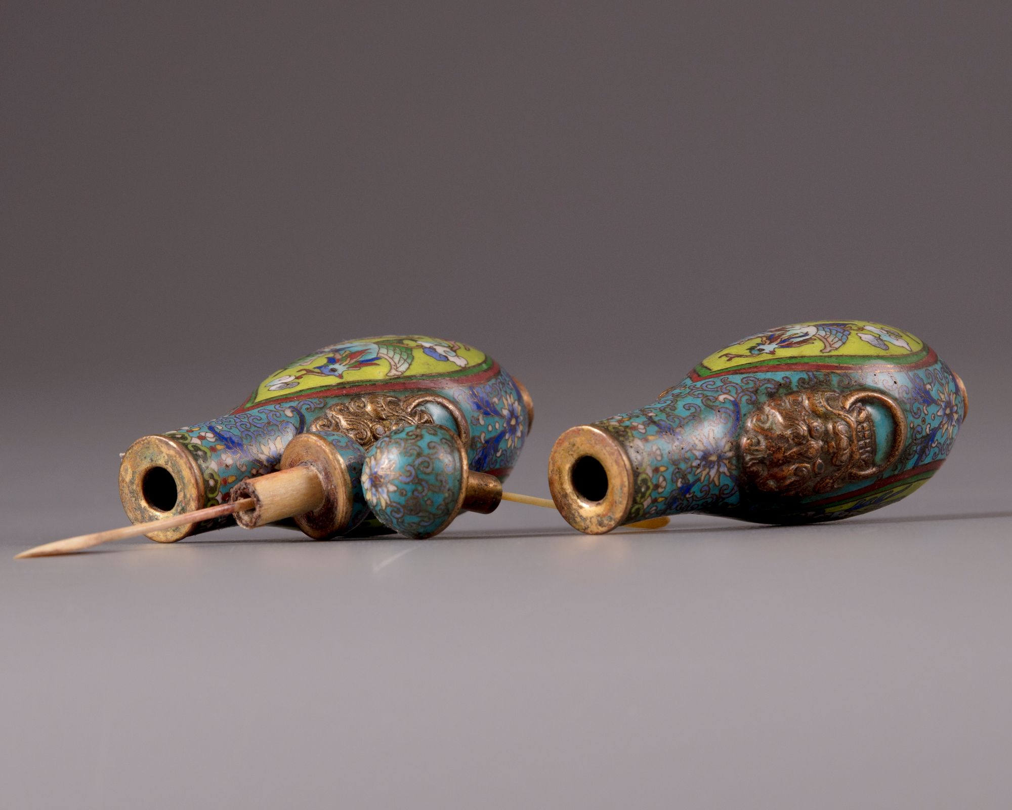 A PAIR OF CHINESE CLOISONNÉ ENAMEL SNUFF BOTTLES, 19TH-20TH CENTURY