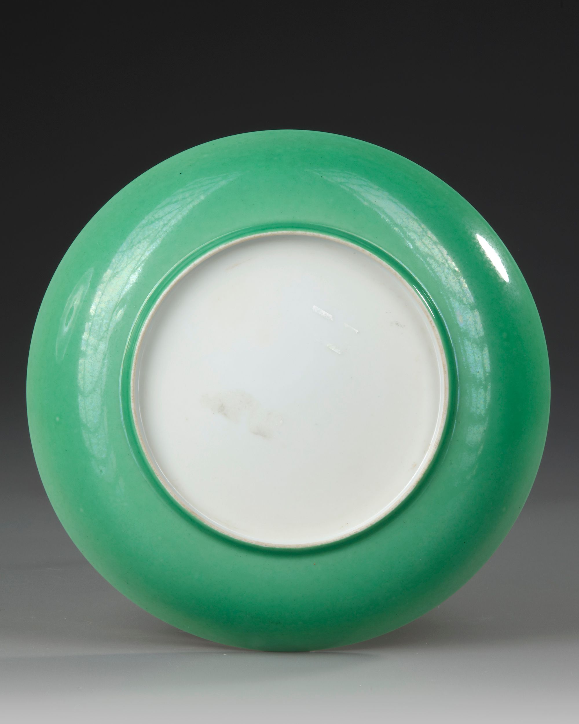 The dish is decorated with three warriors in a rocky landscape. Each character is labelled with their name. Diameter: 21.2 cm.