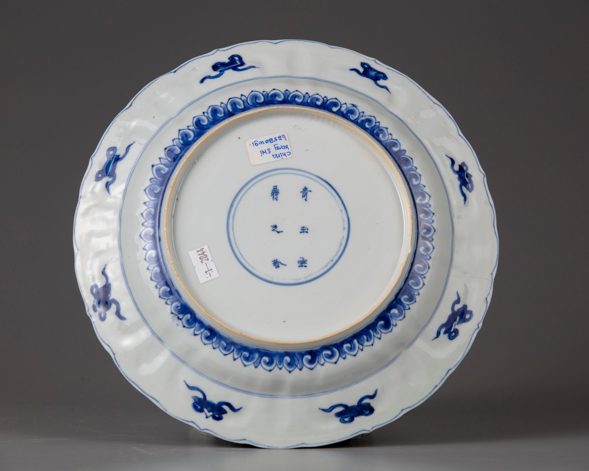 The dish is decorated to the interior with a roundel enclosing peonies, flowers and foliage. The cavetto with panels enclosing different kinds of flowers. The exterior with precious objects and the base is inscribed with a mark reading 'Qi yu bao ding zhi zhen' within a double circle.