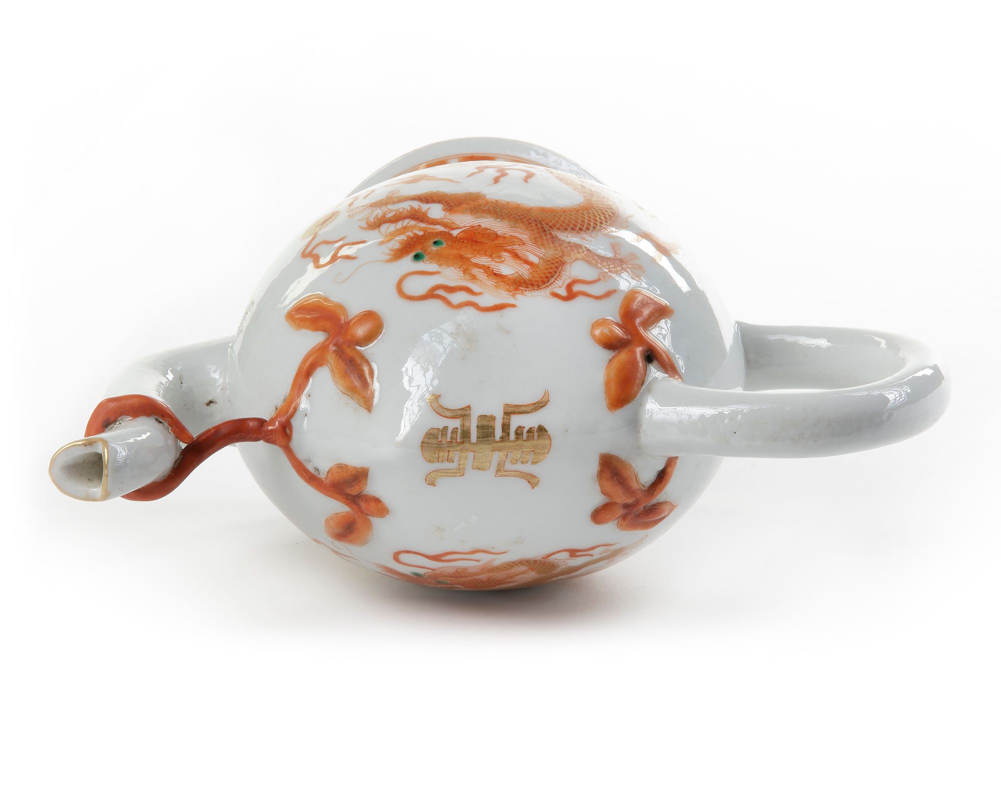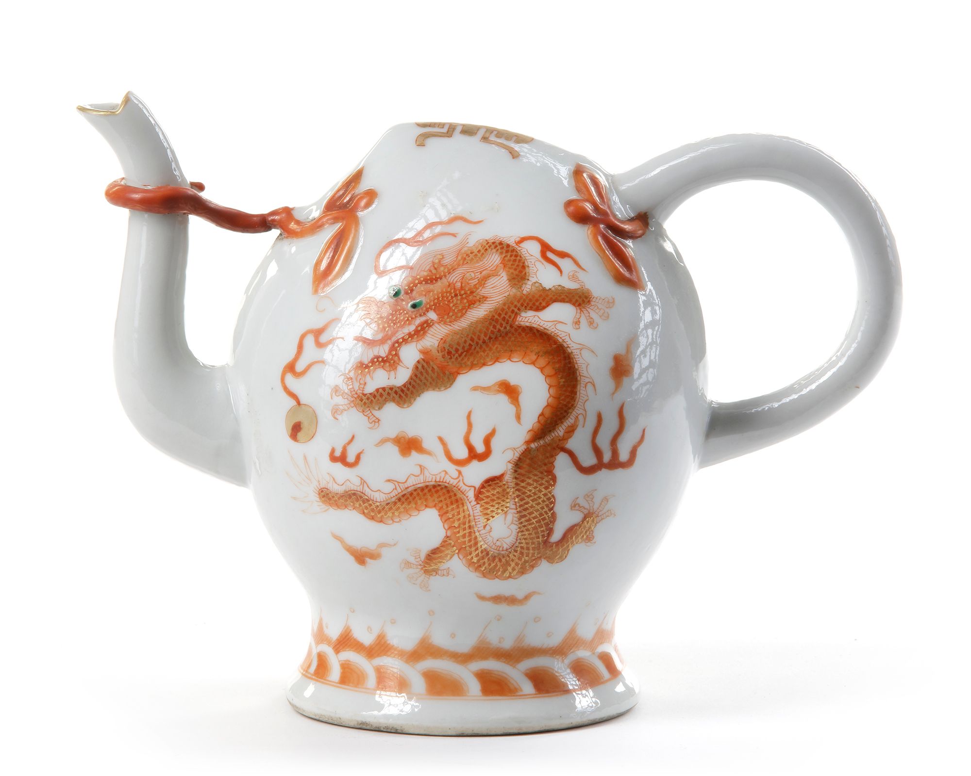 A CHINESE IRON-RED DECORATED 'DRAGON' CADOGAN TEAPOT, 19TH CENTURY