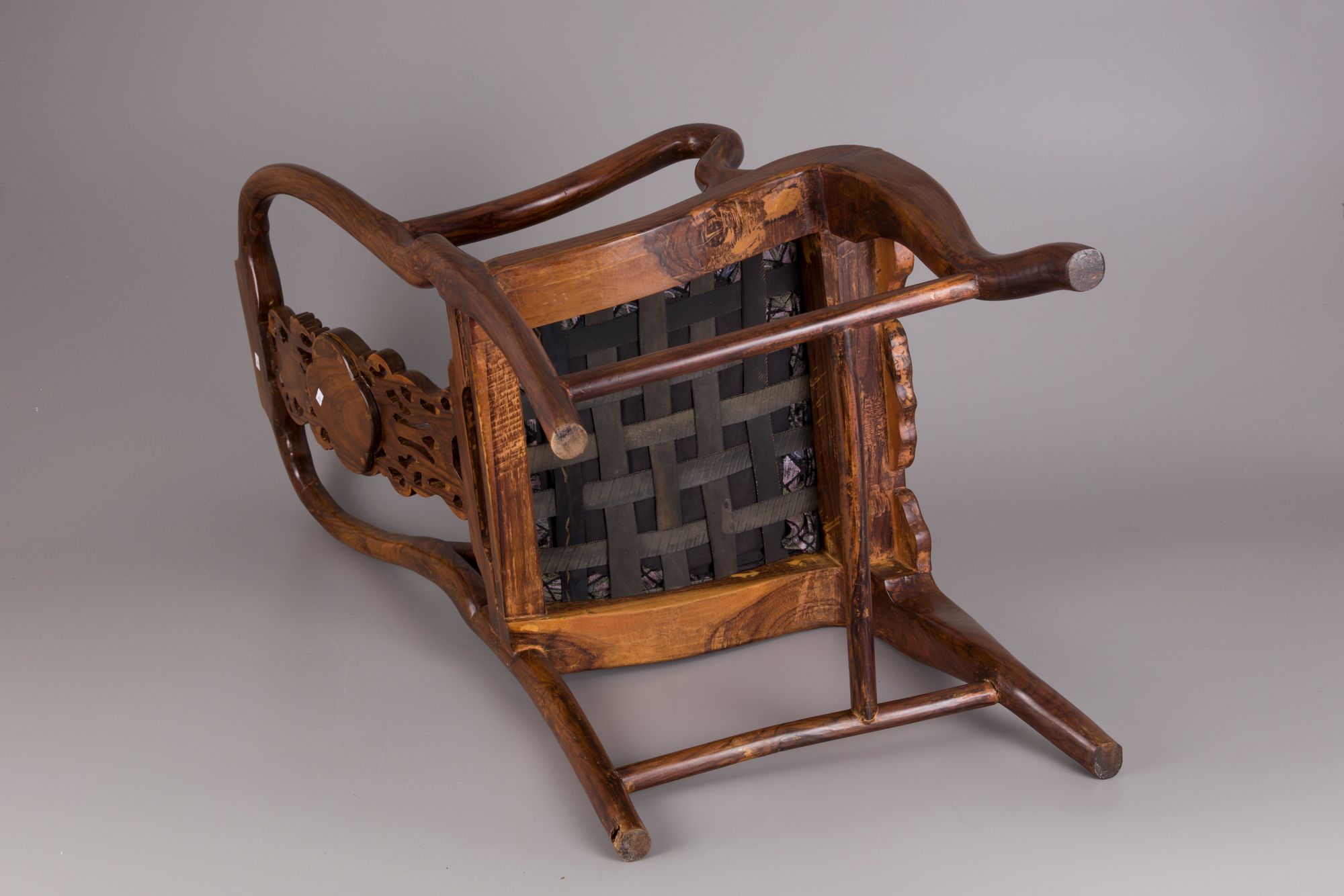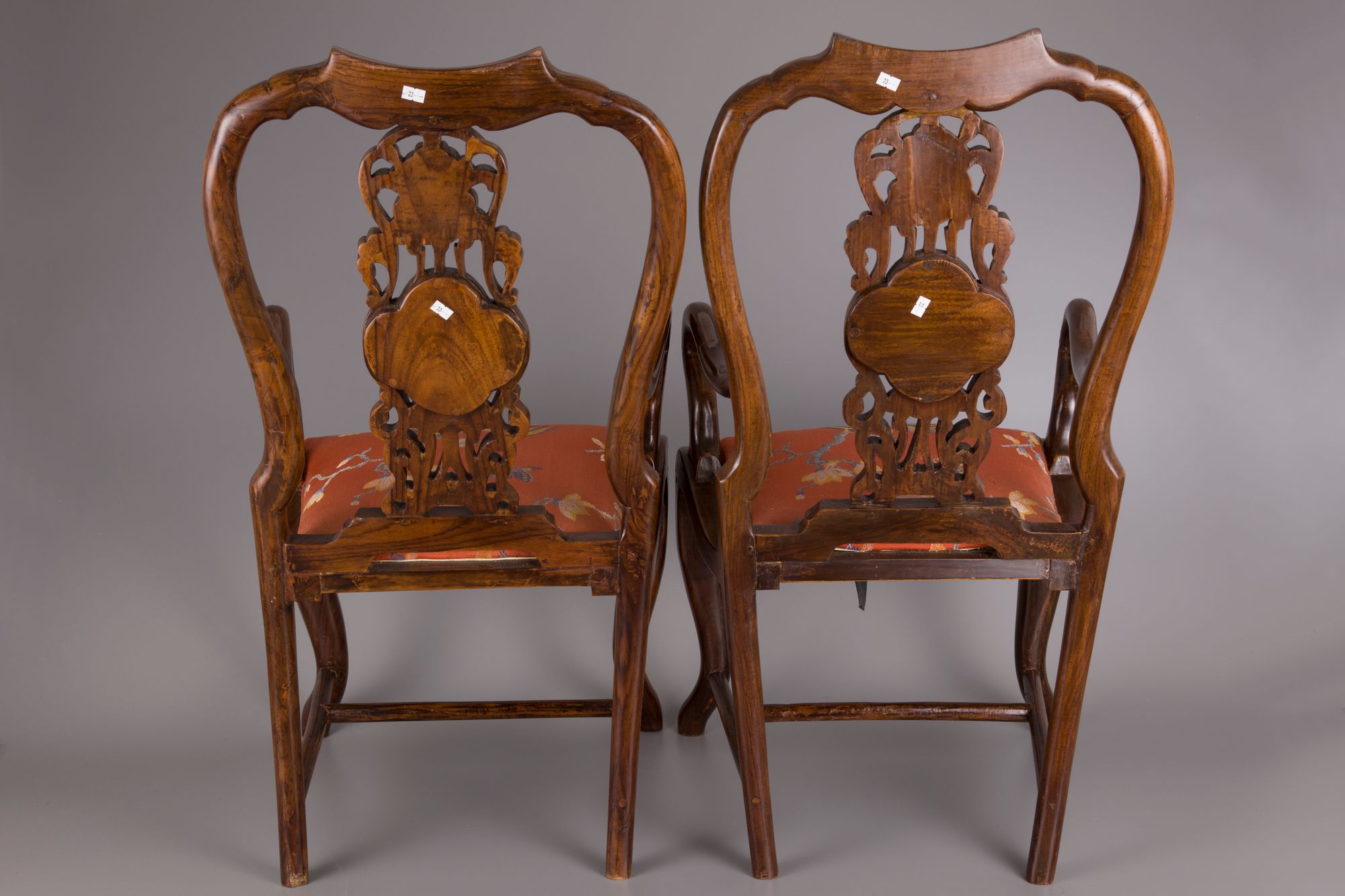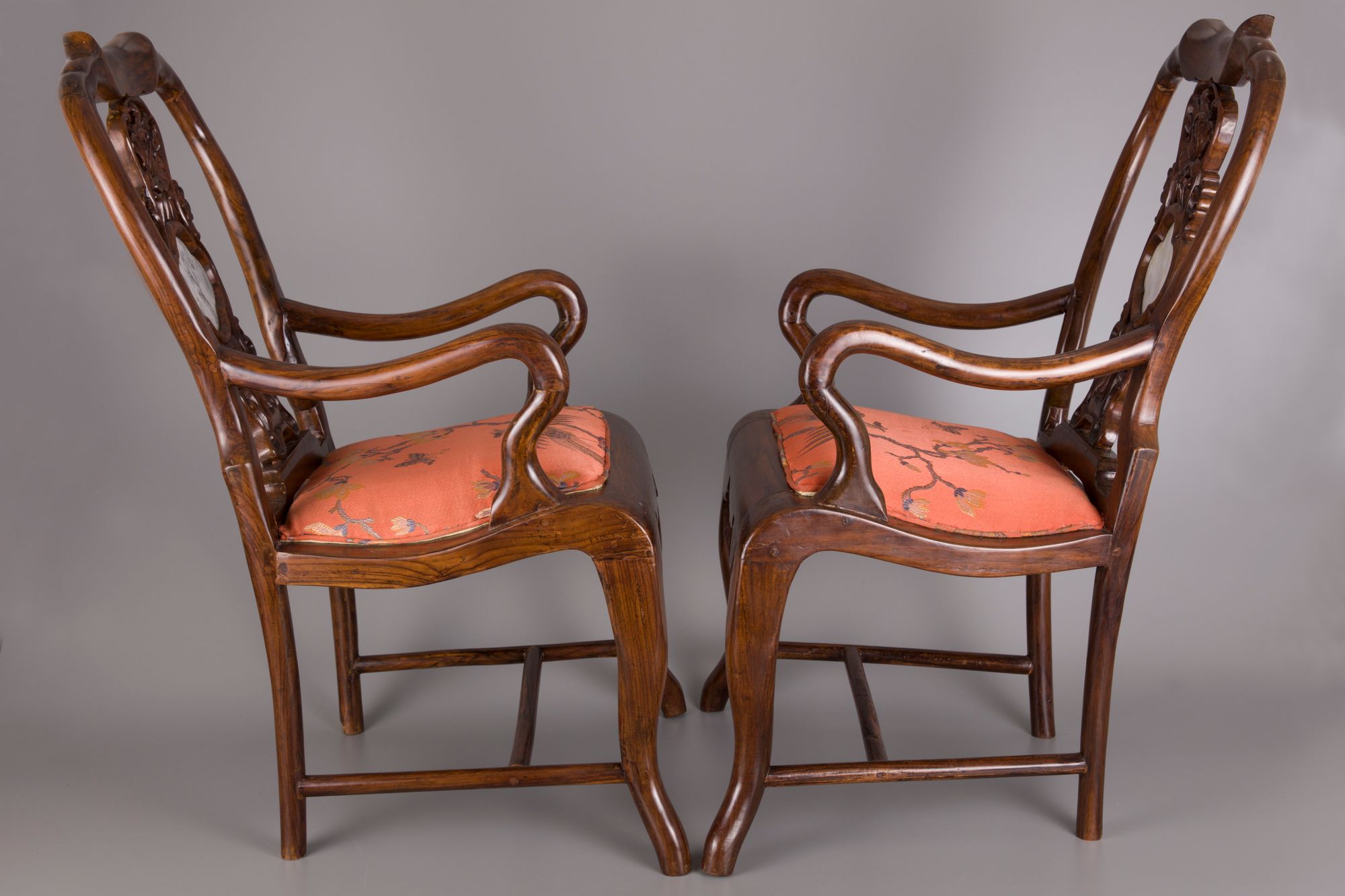A PAIR OF CHINESE HARDWOOD CHAIRS WITH MARBLE BACKREST