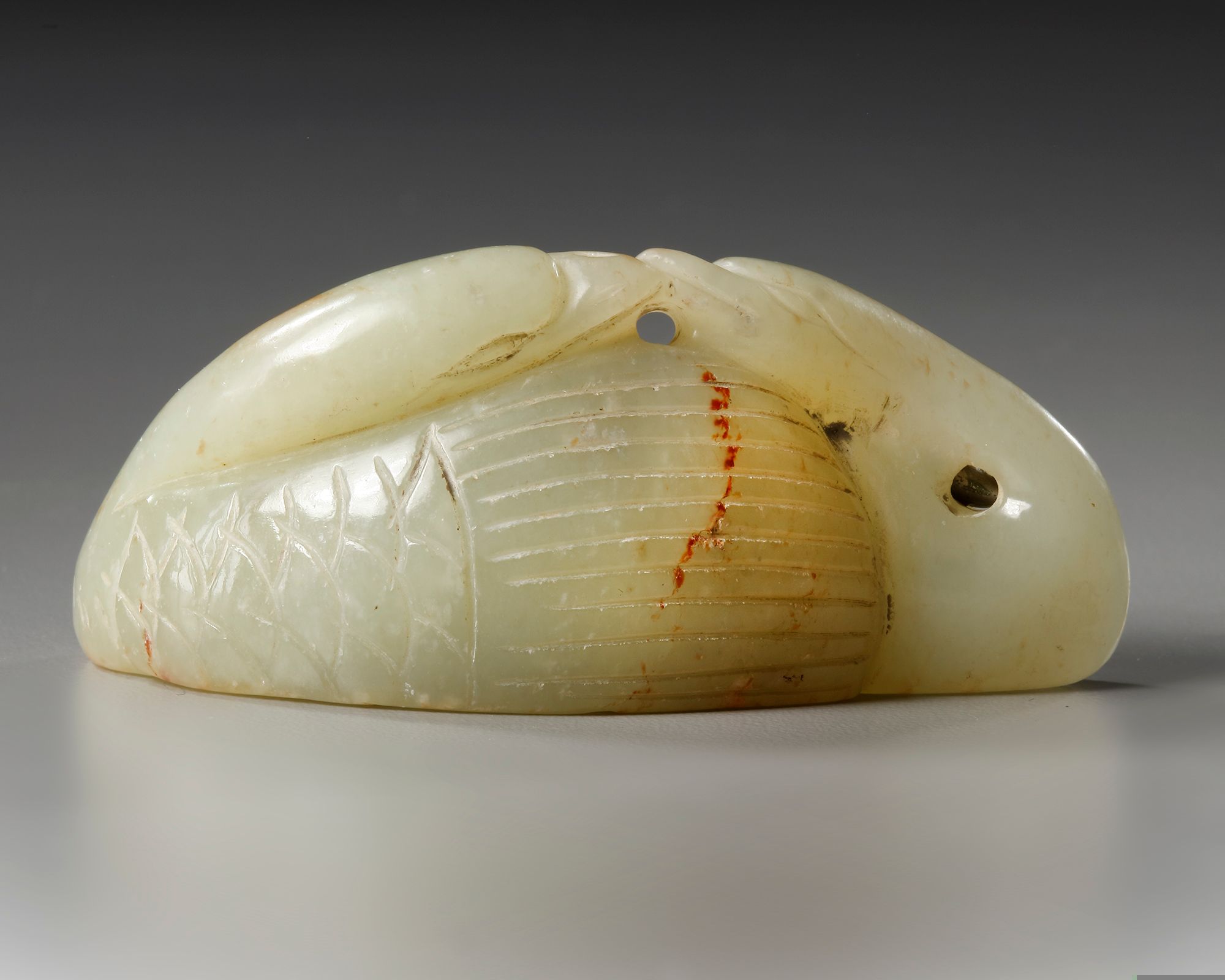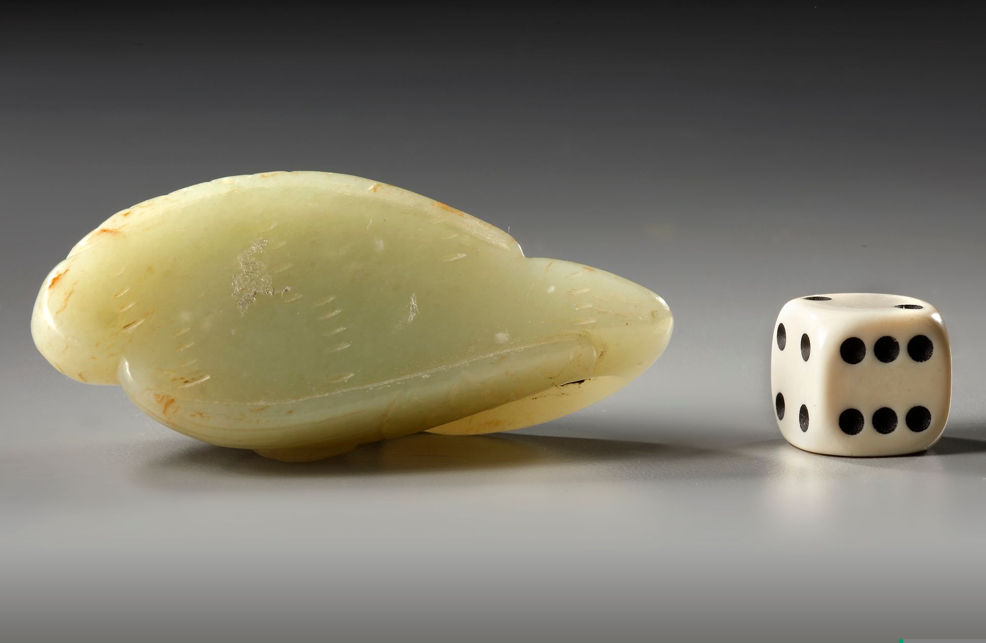 The twin geese carving: 6.7 cm long.