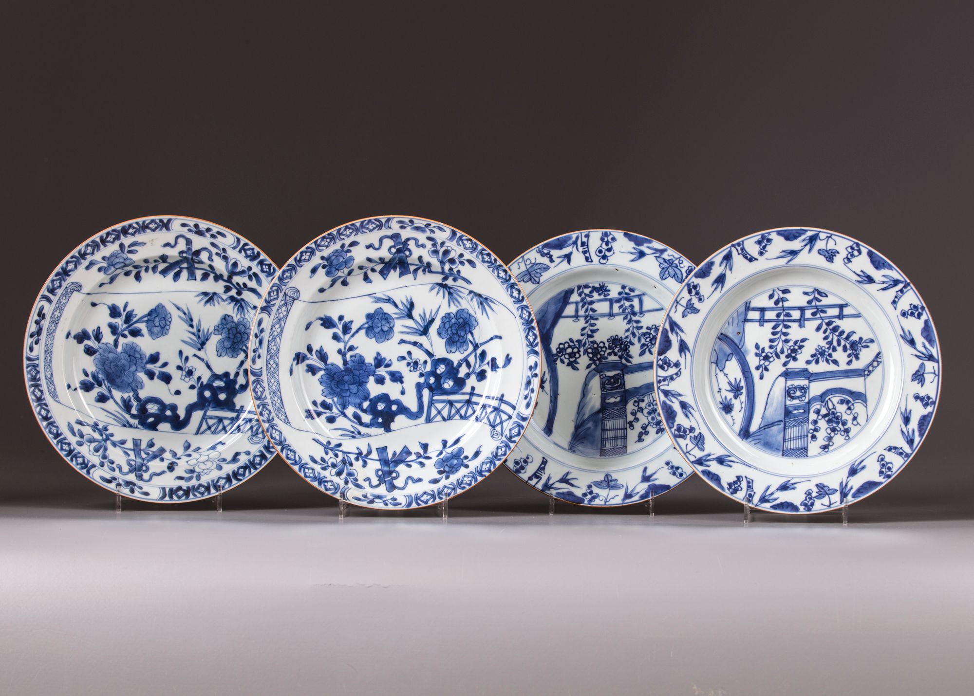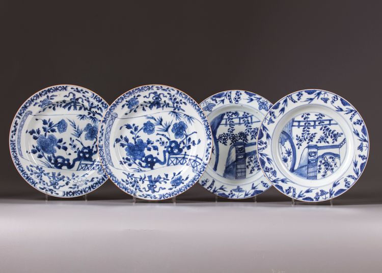 FOUR BLUE AND WHITE PORCELAIN PLATES, 18TH CENTURY
