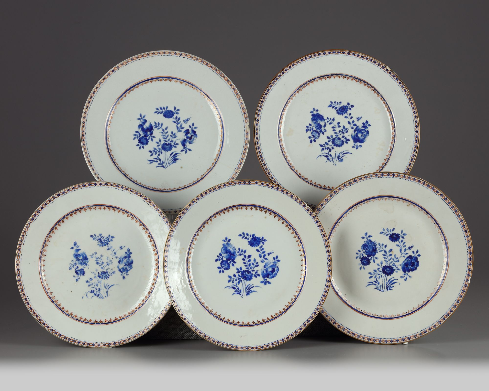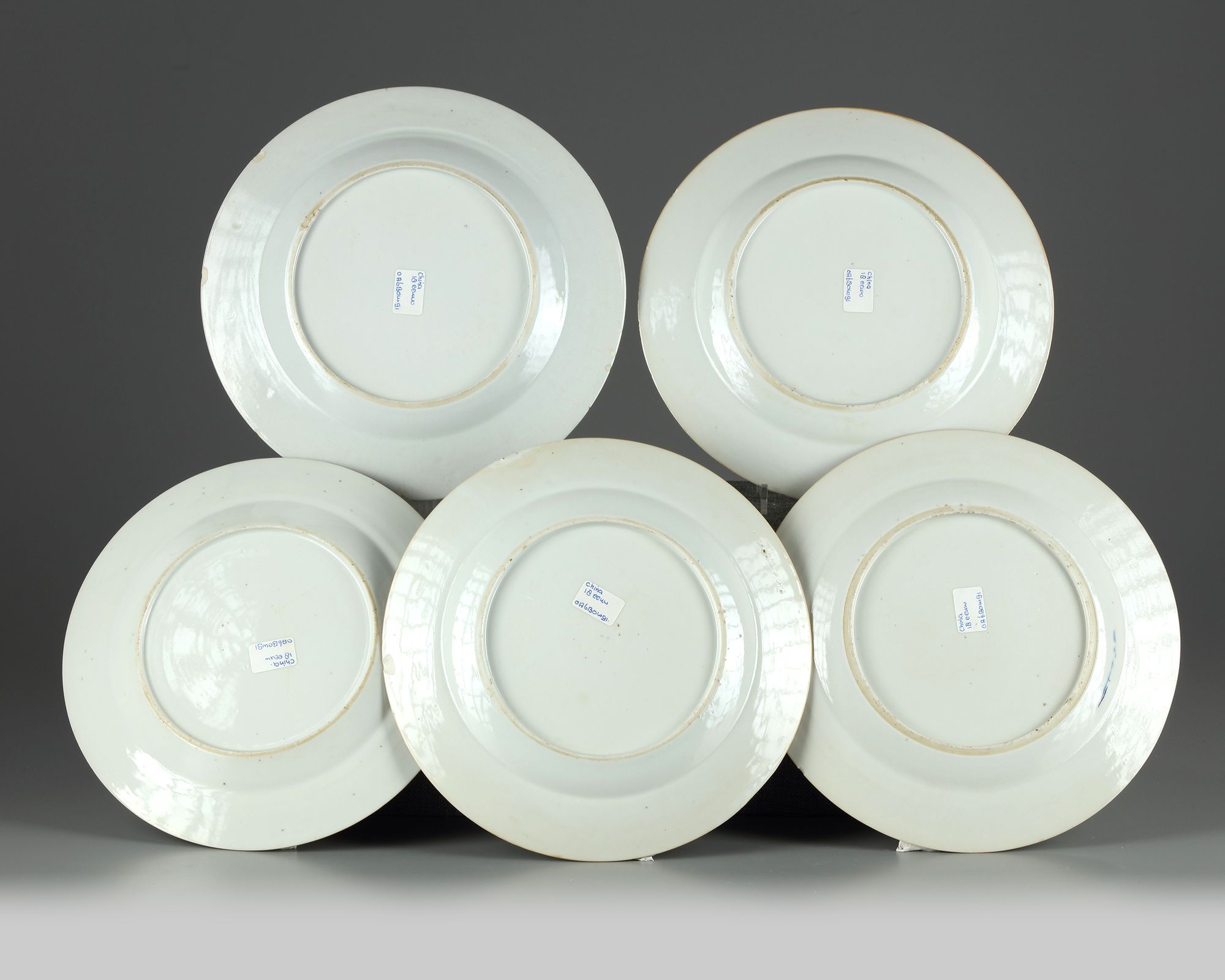 The dishes: 24.8 cm. diam.; 24.5 cm. diam.; 24.2 cm. diam. (two); 23.5 cm. diam.