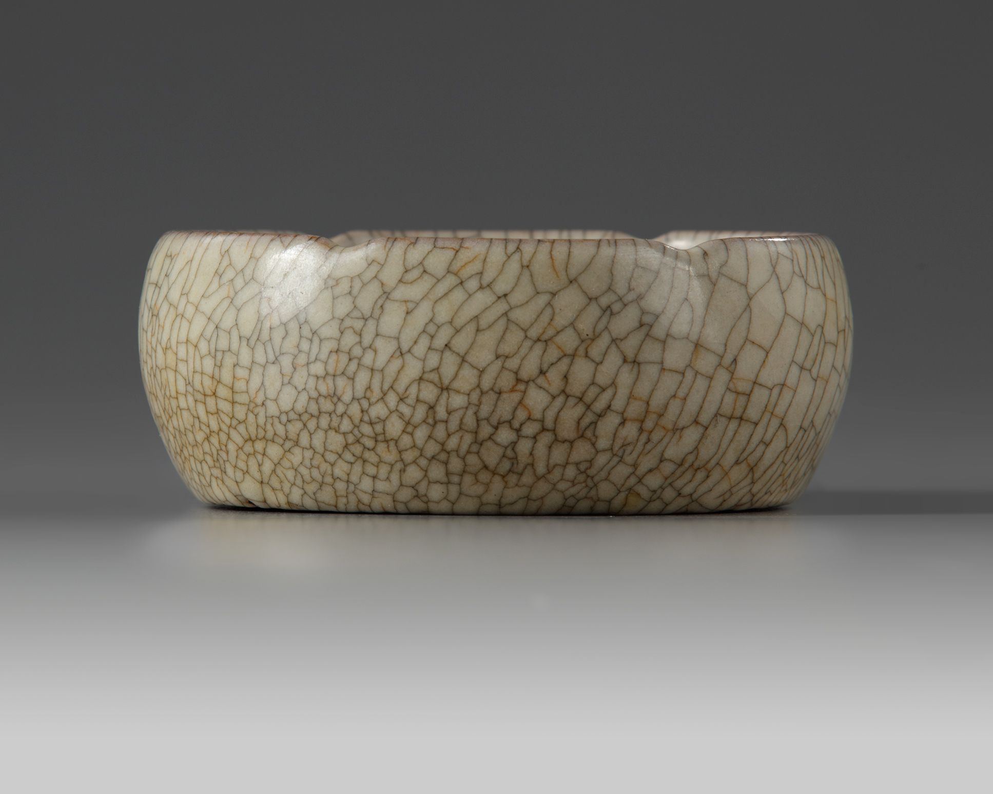 A CHINESE CRACKLE-GLAZED FOLIATE RIMMED WASHER, QING DYNASTY (1644–1911)
