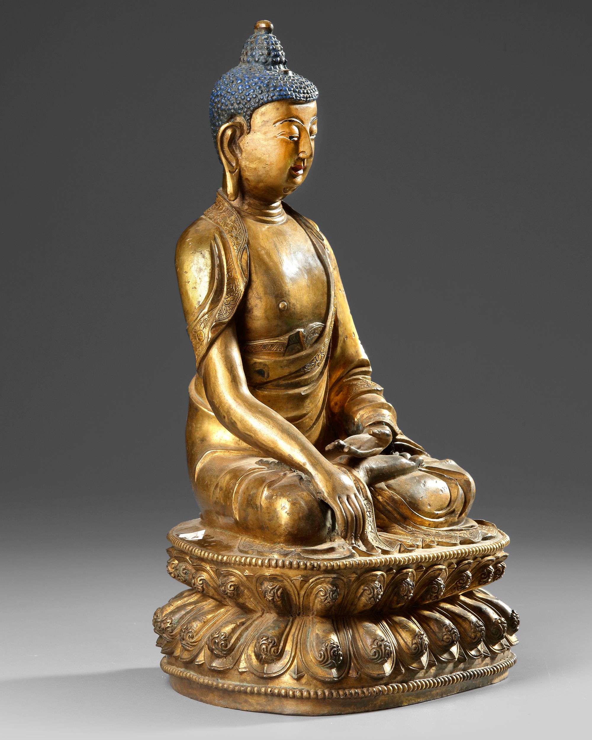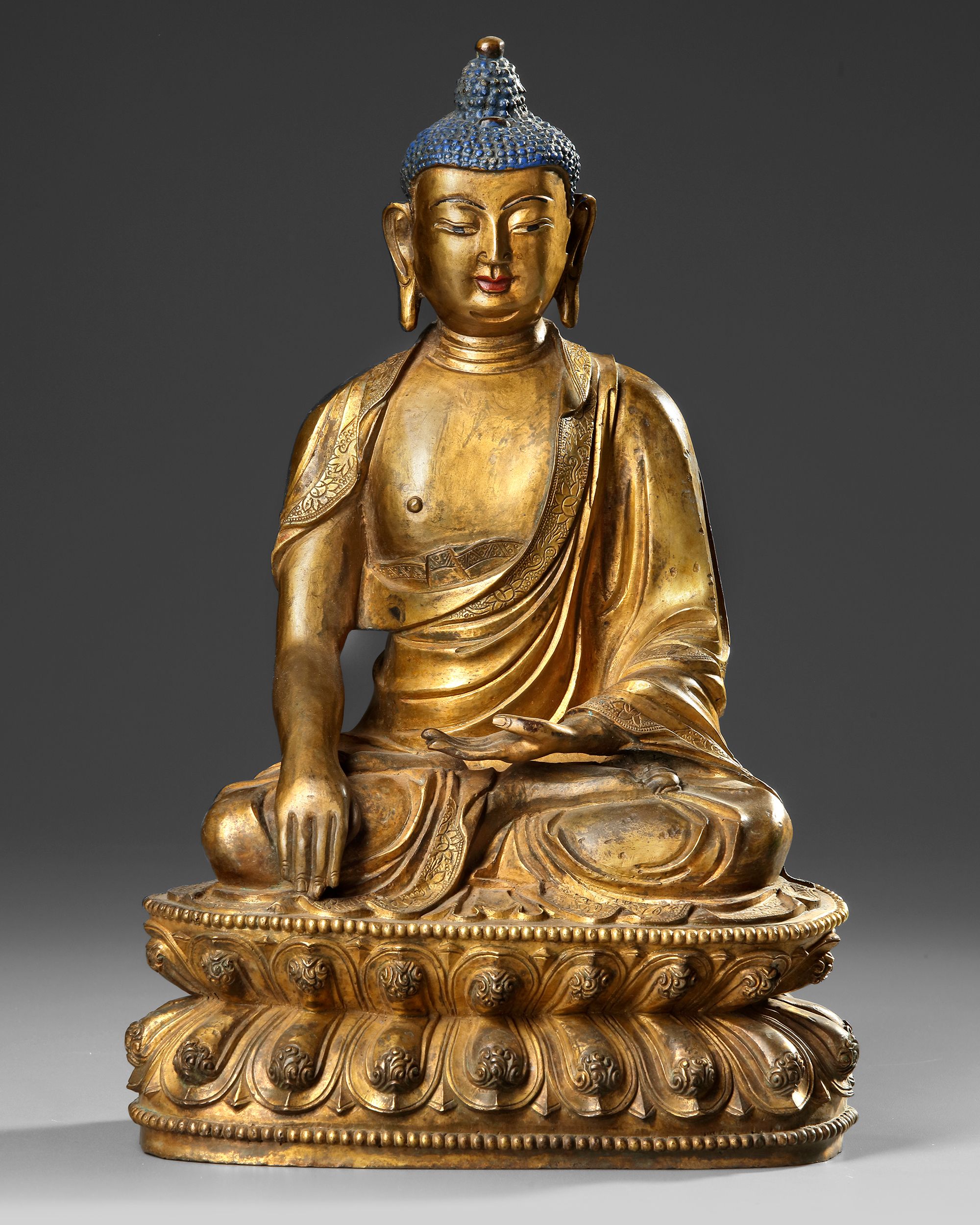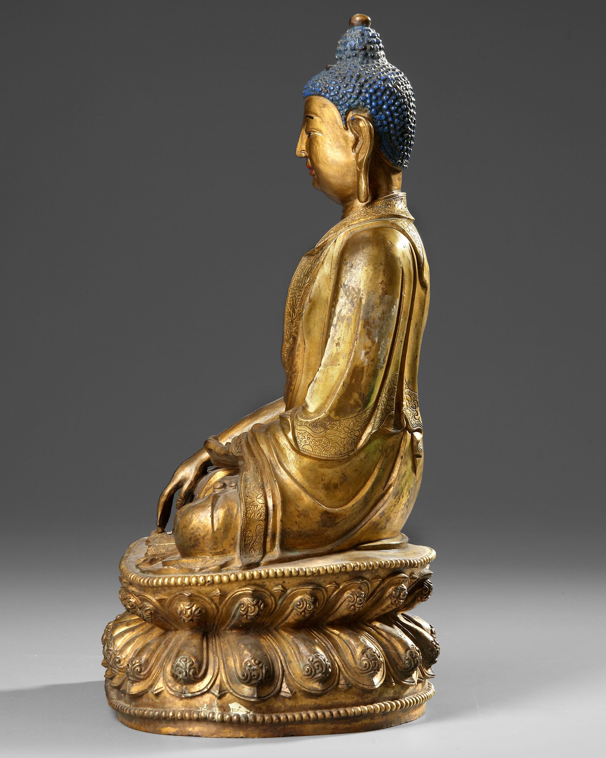 A CHINESE GILT AND BRONZE FIGURE OF BUDDHA, 19TH CENTURY