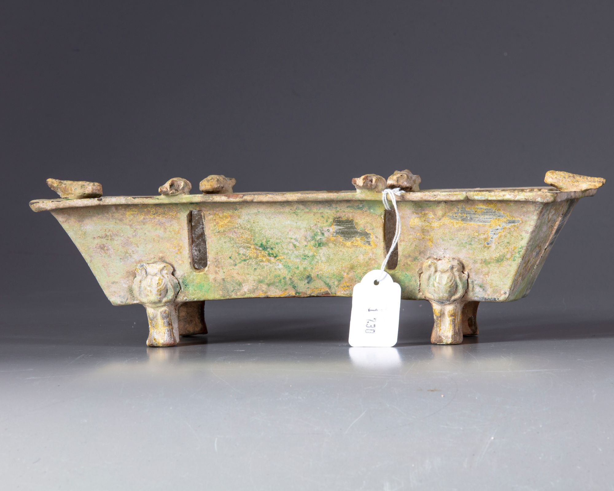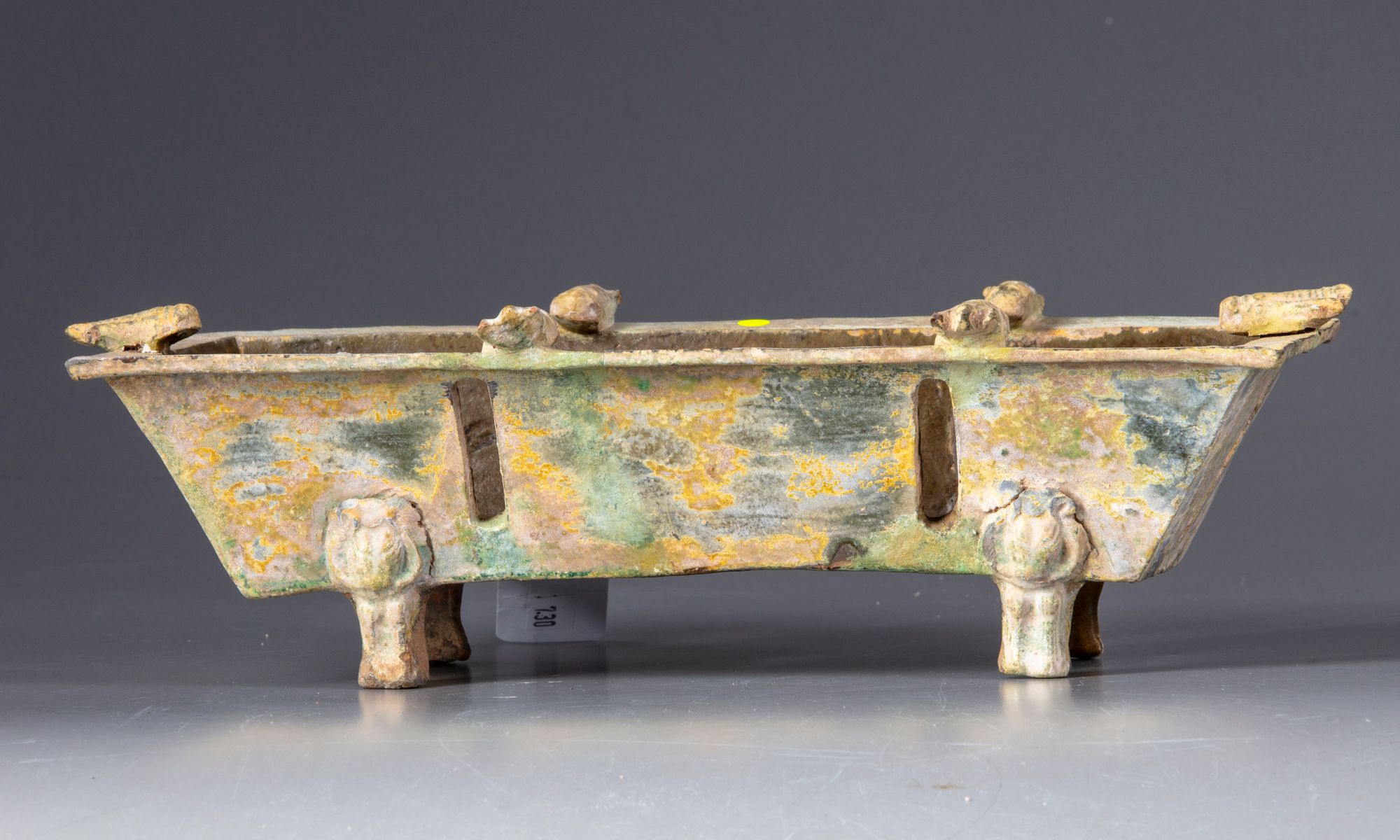 Appears to be in overall good condition. There is oxidation to the glaze. 29 by 13 cm.