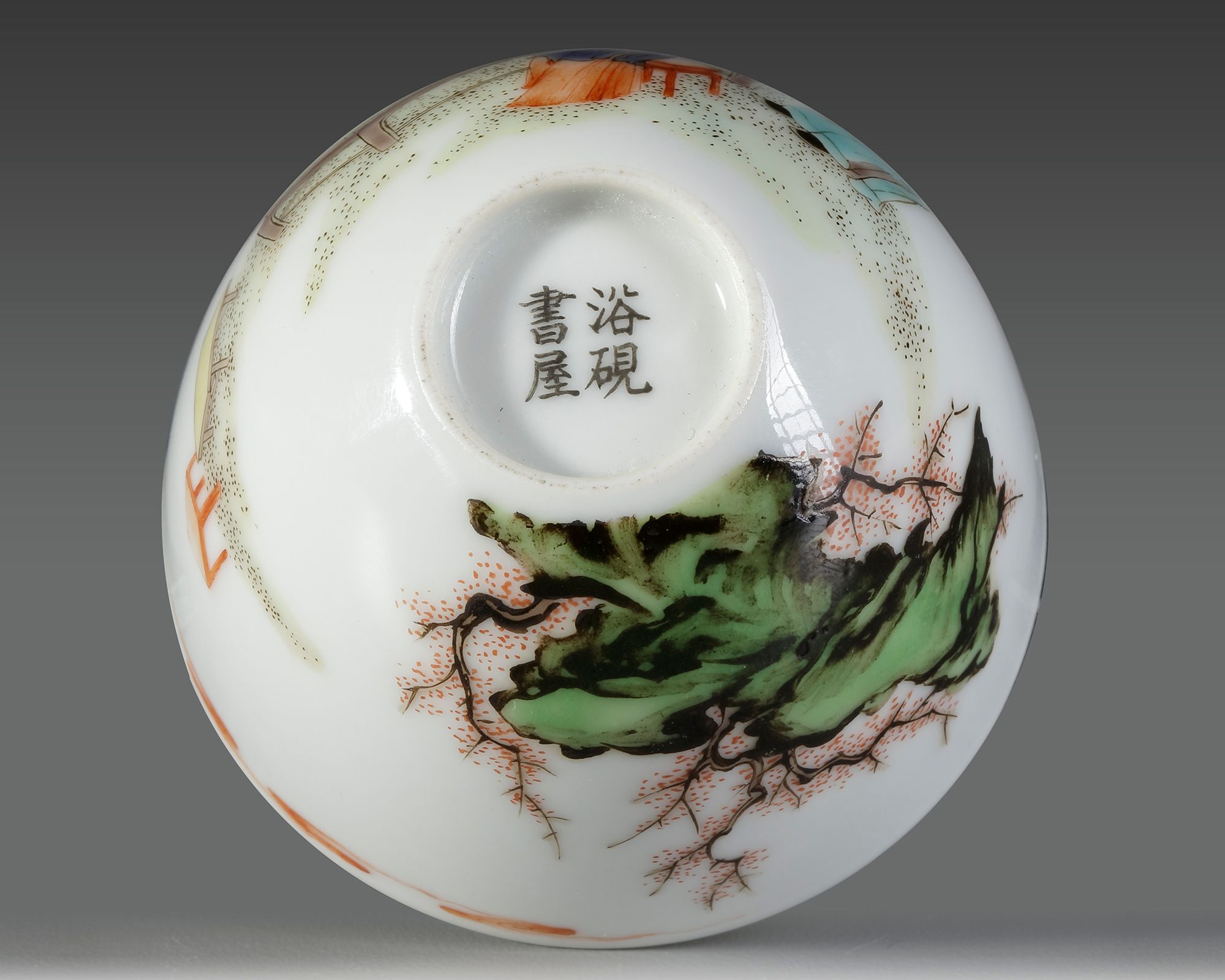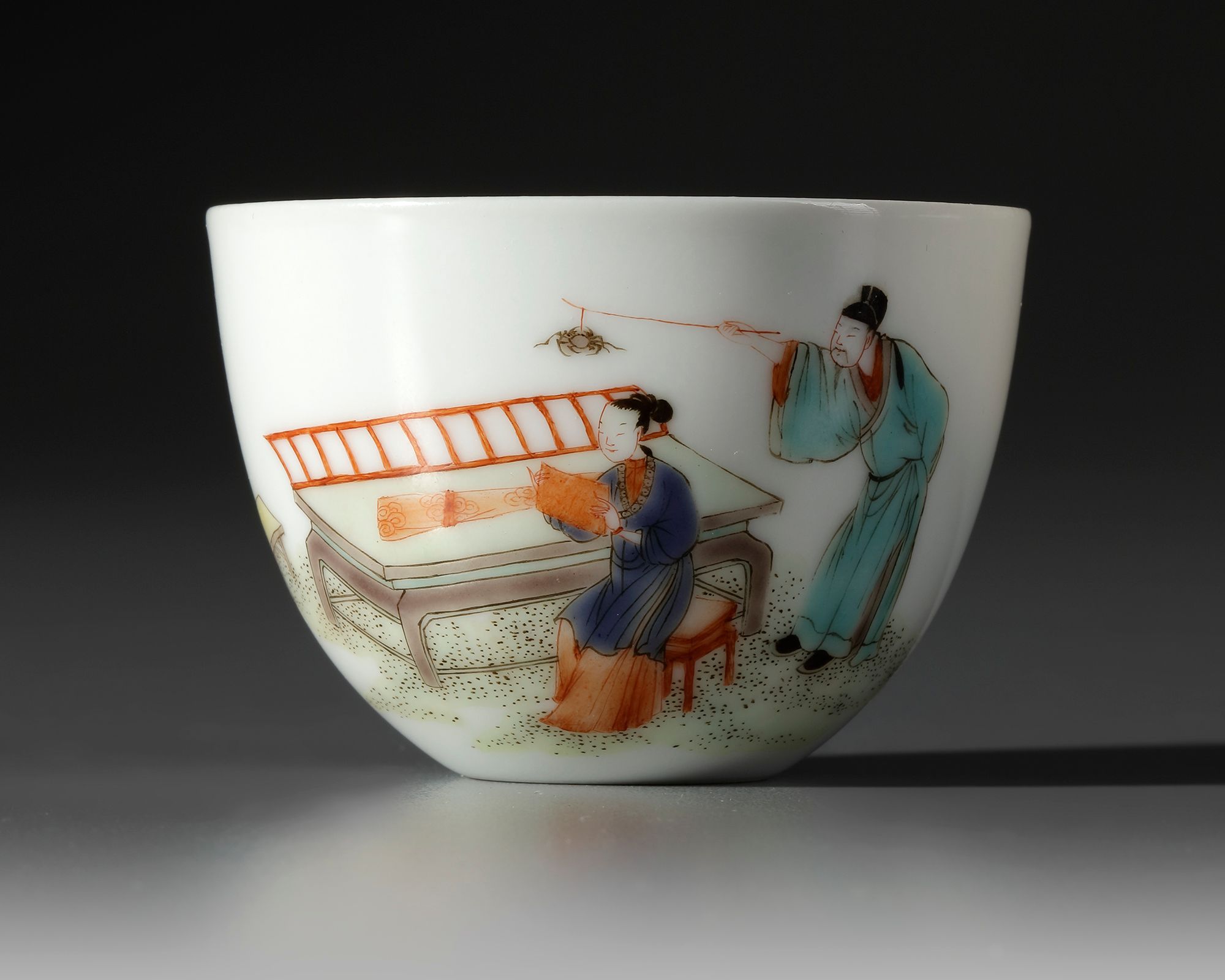 The delicately potted flared sides are well painted with a couple seated on a table,