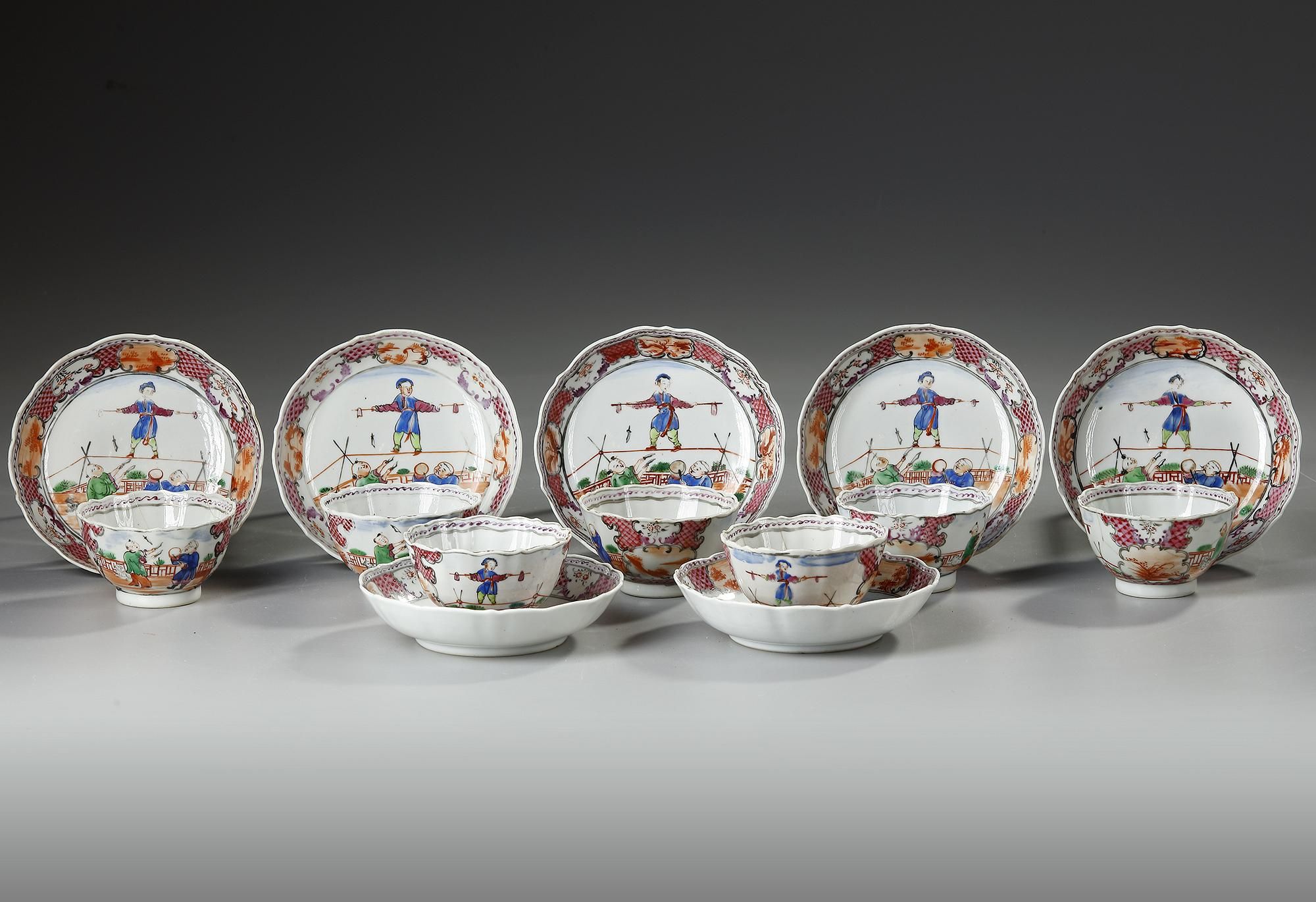 A SET OF SEVEN CHINESE CUPS AND SAUCERS MANDARIN, CA 1775