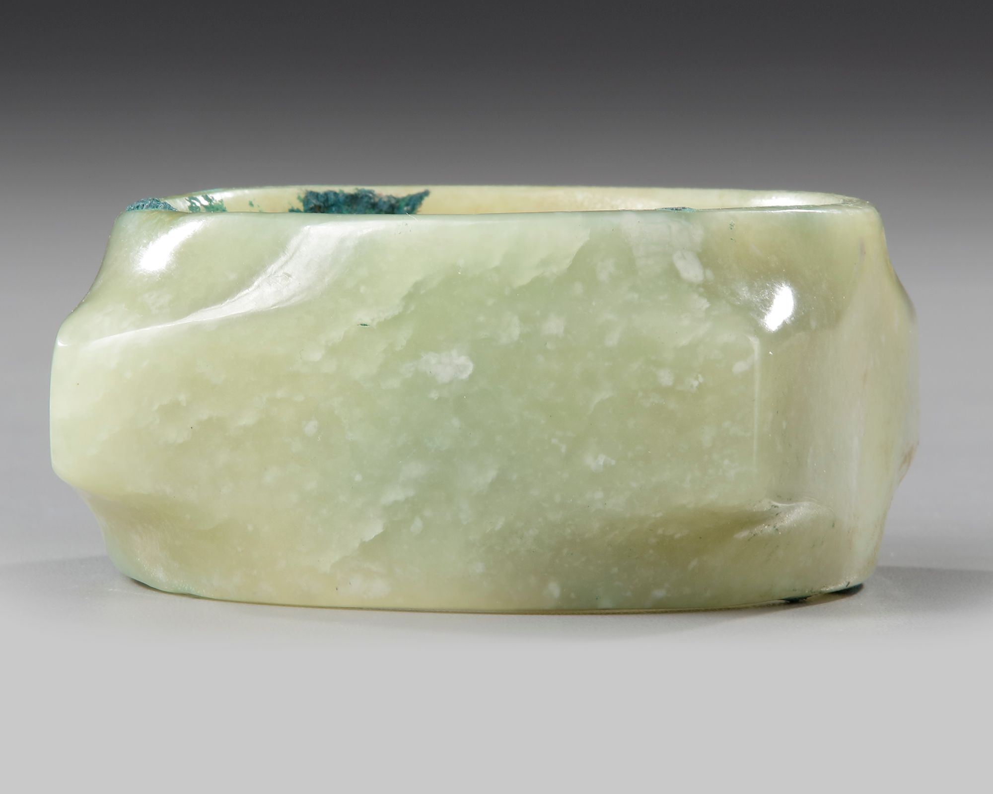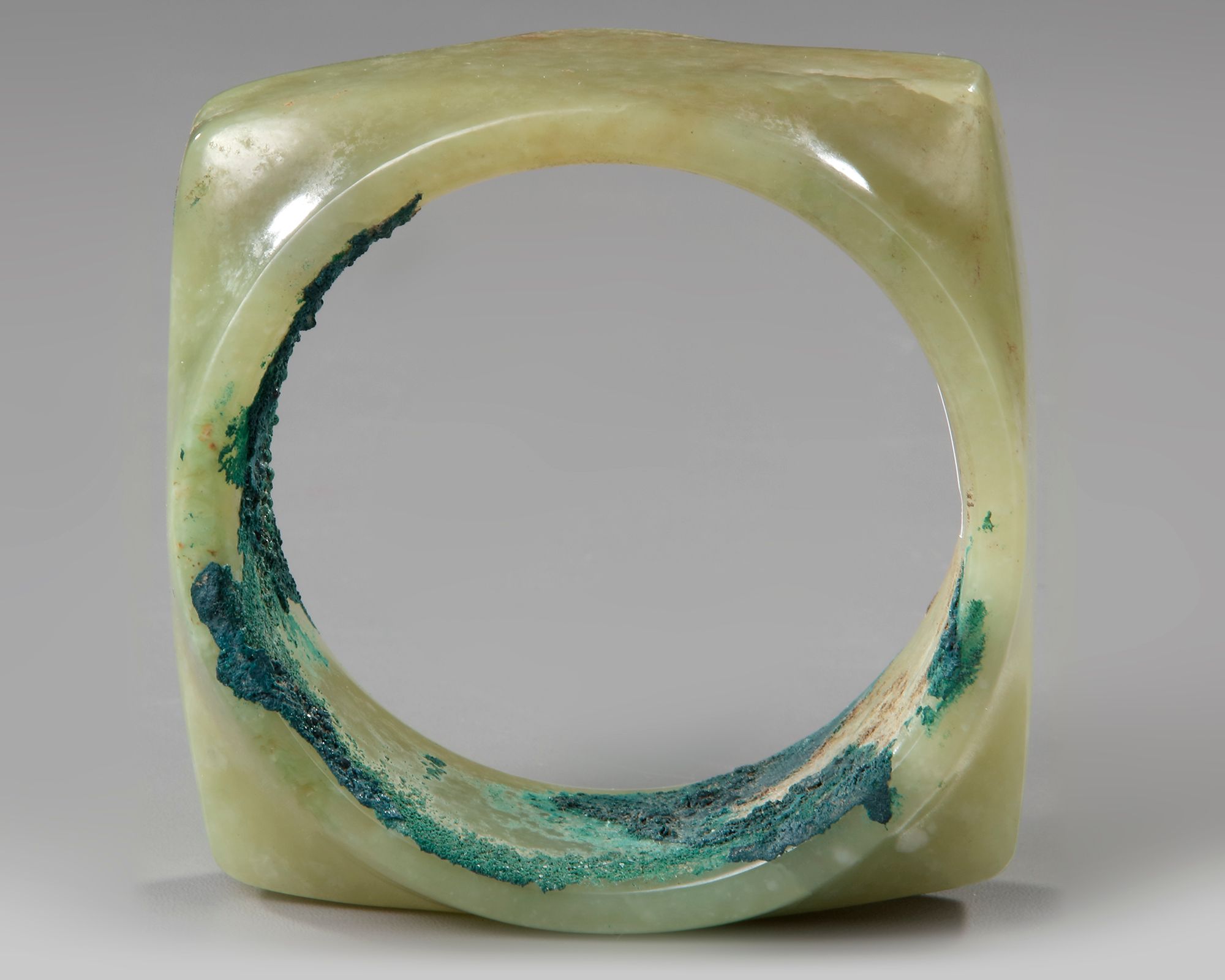 With flattened square section, carved with a cylindrical tube extending to either end.