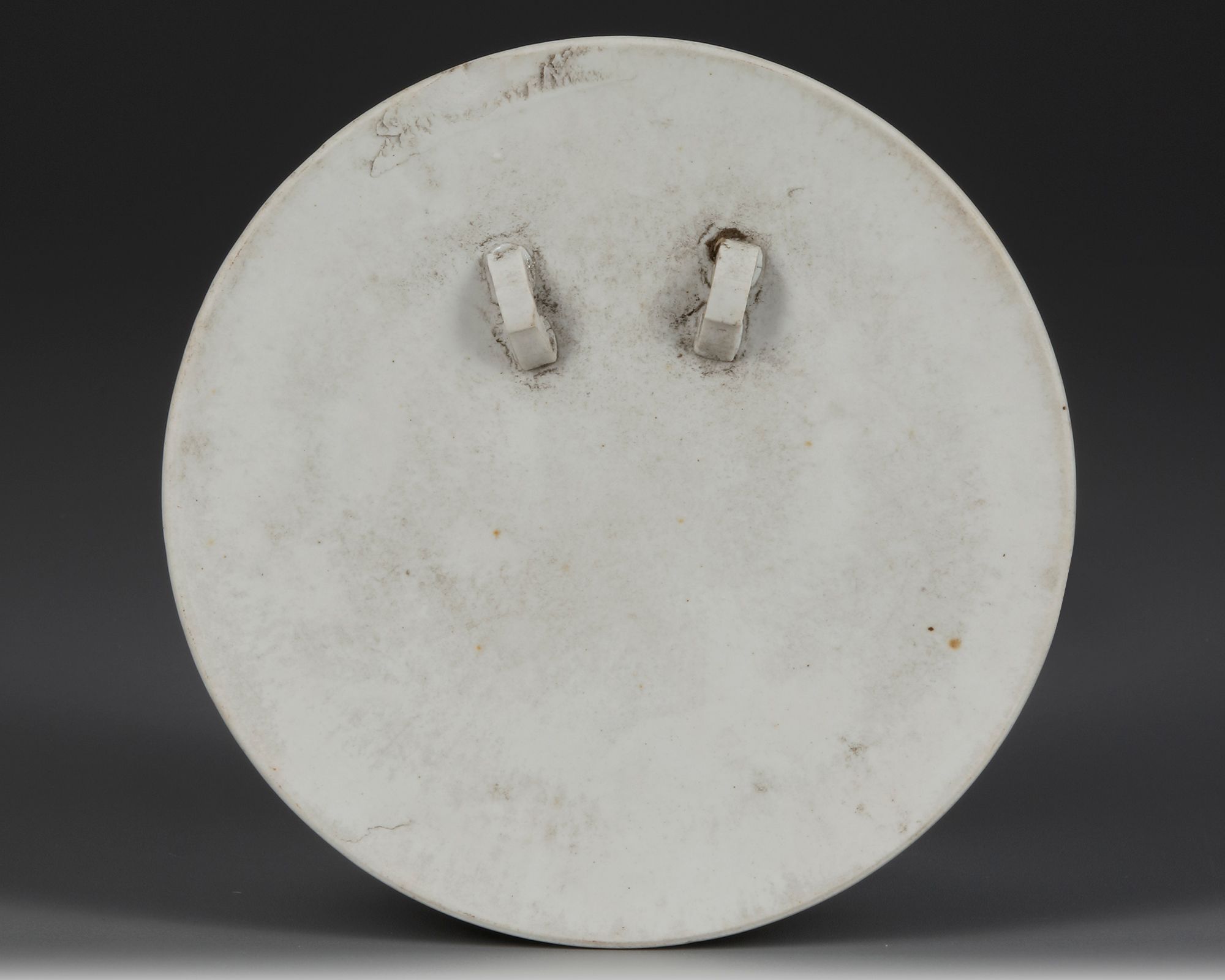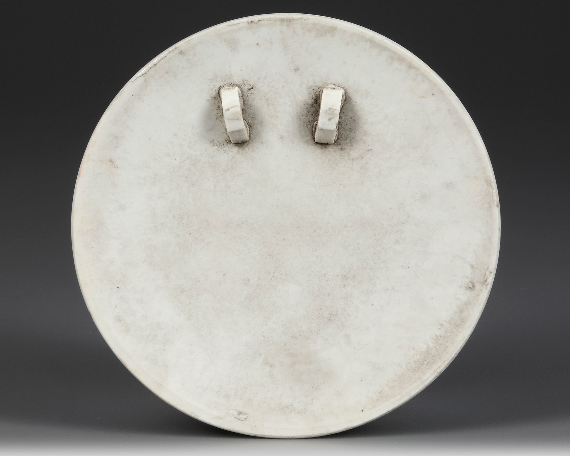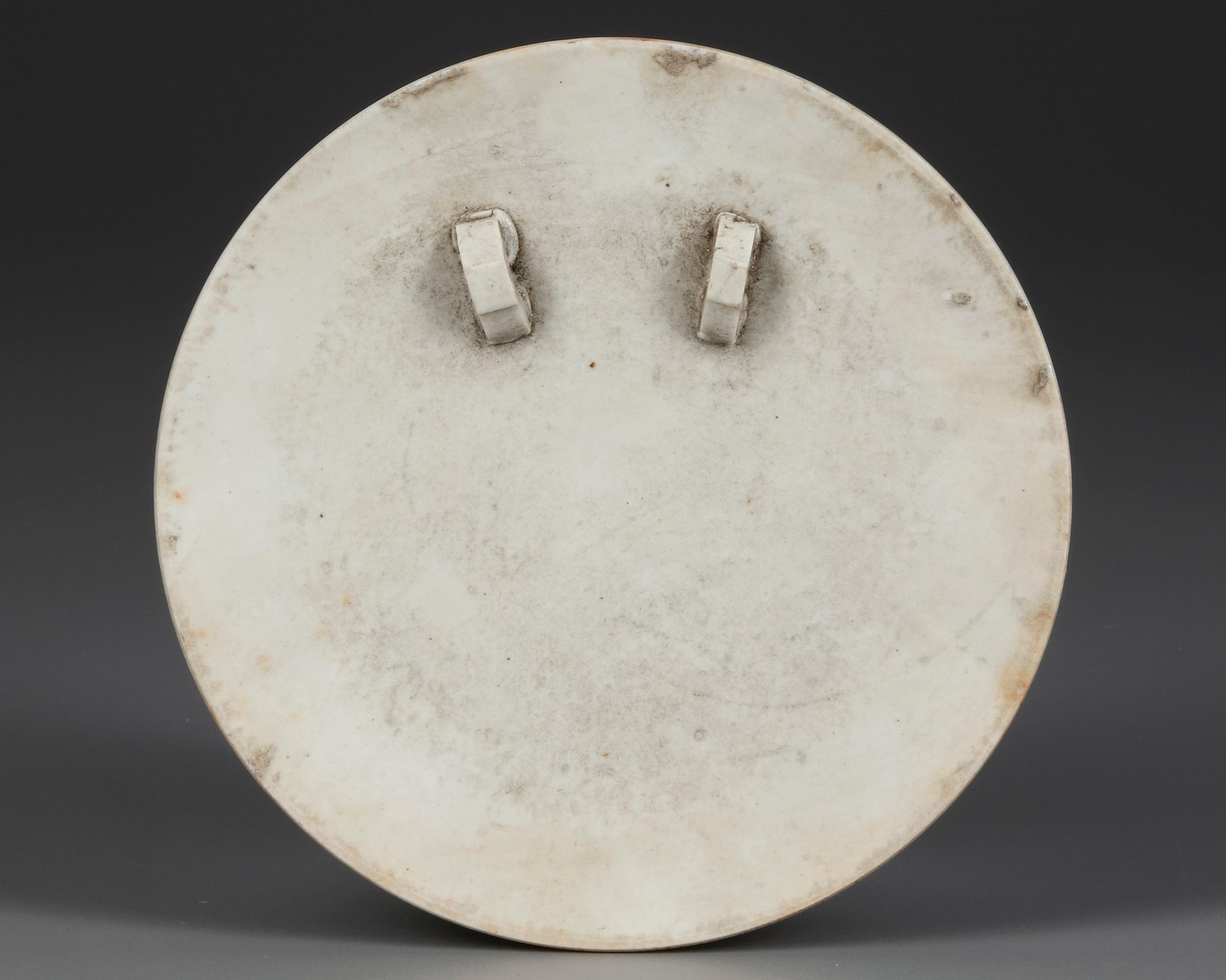 Three Chinese porcelain plaques with hanging loops to the backside, decorated in copper red with fishermen on sampan in a mountainous river landscape, with Chinese calligraphy.