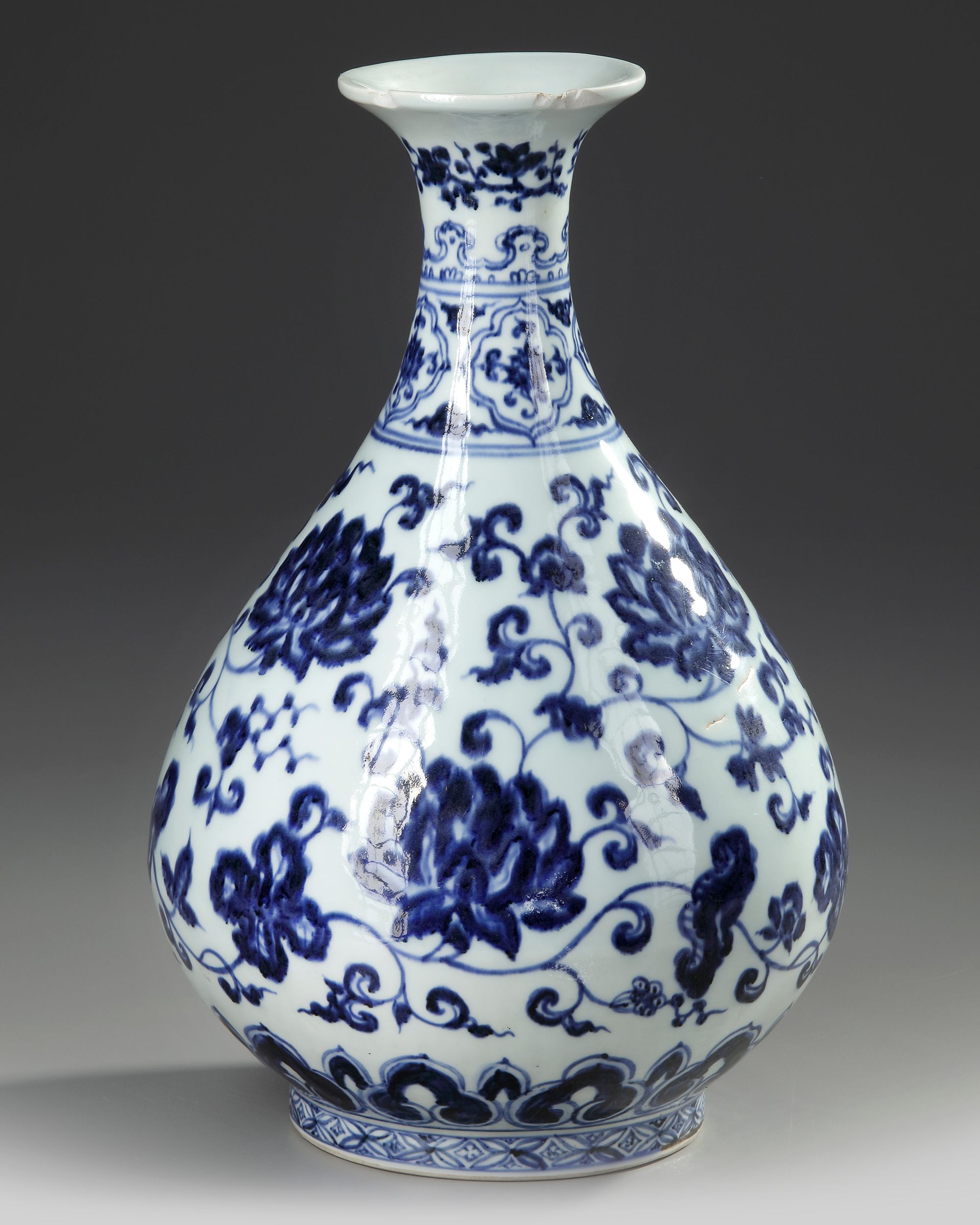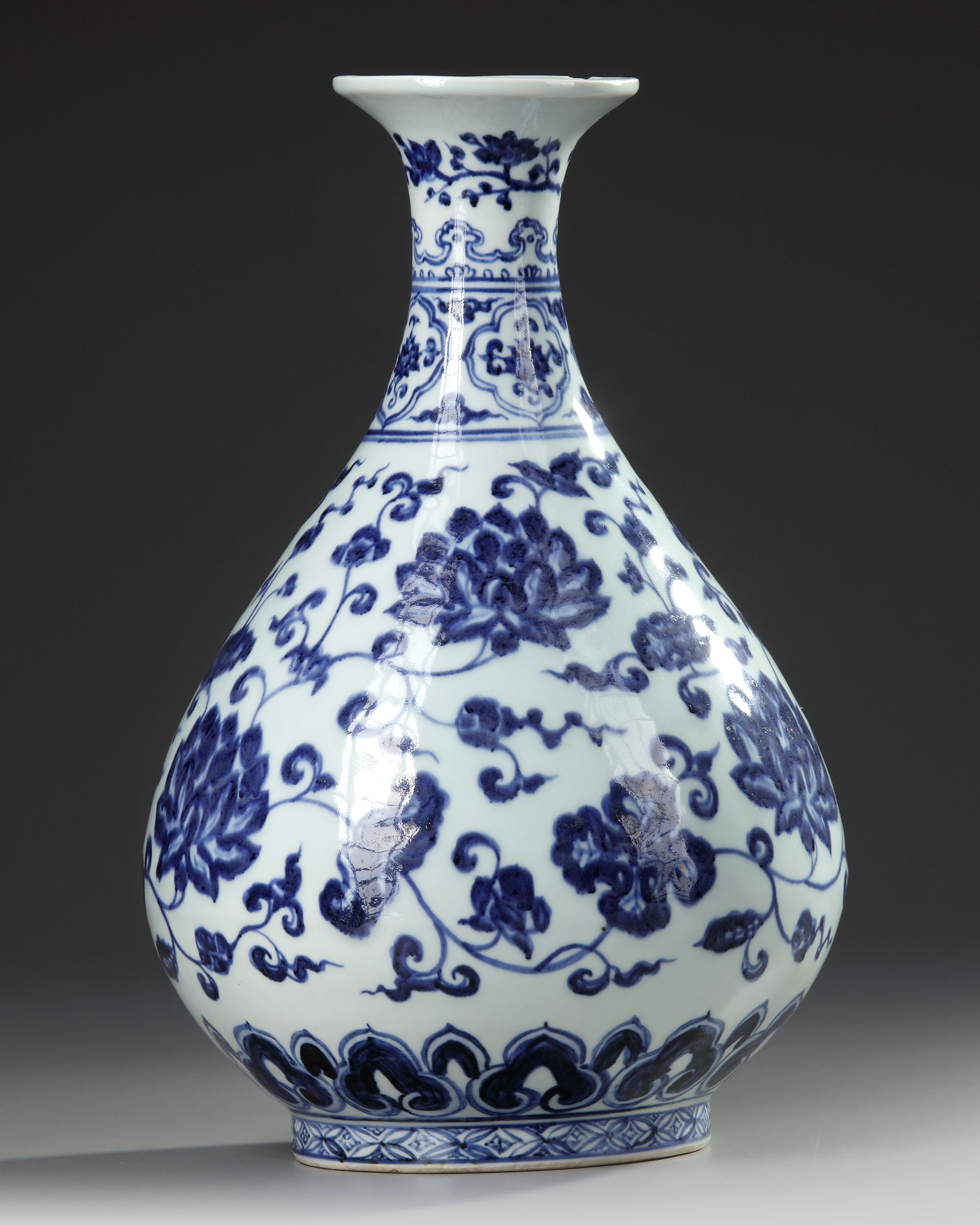 A CHINESE BLUE AND WHITE YUHUCHUNPING VASE, QING DYNASTY (1644-1911)