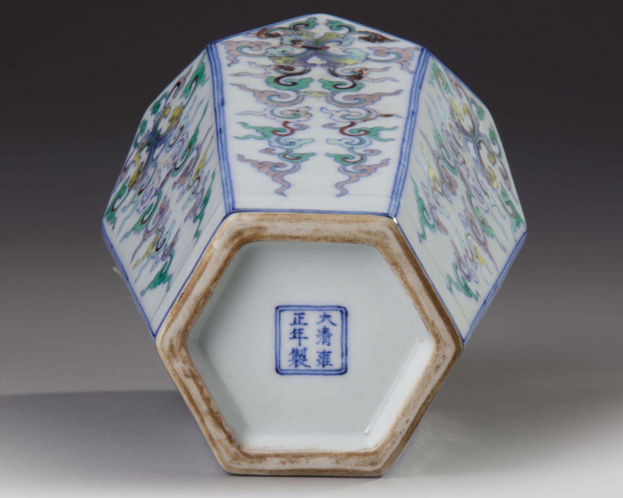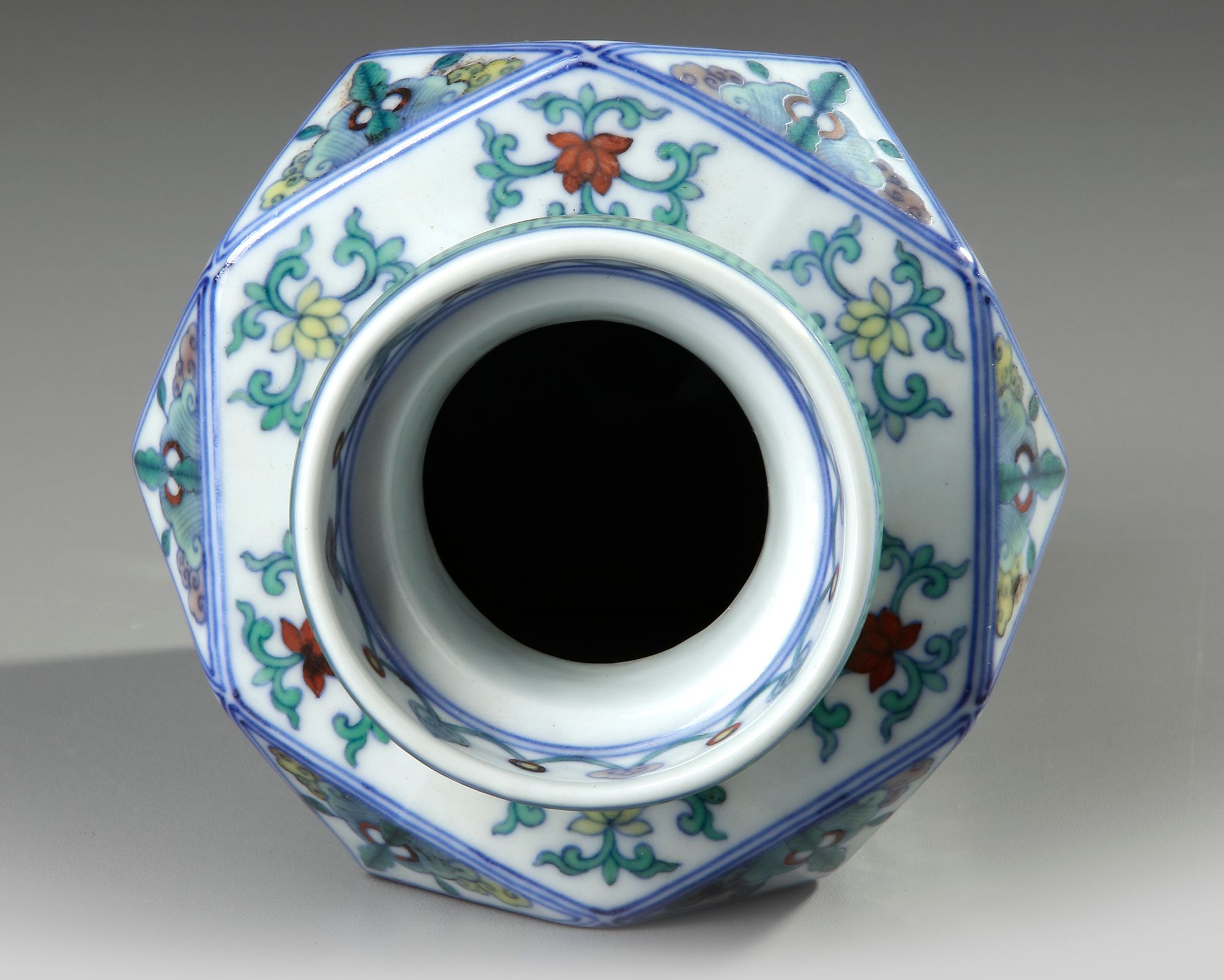 A CHINESE HEXAGONAL DOUCAI VASE, 19TH/20TH CENTURY