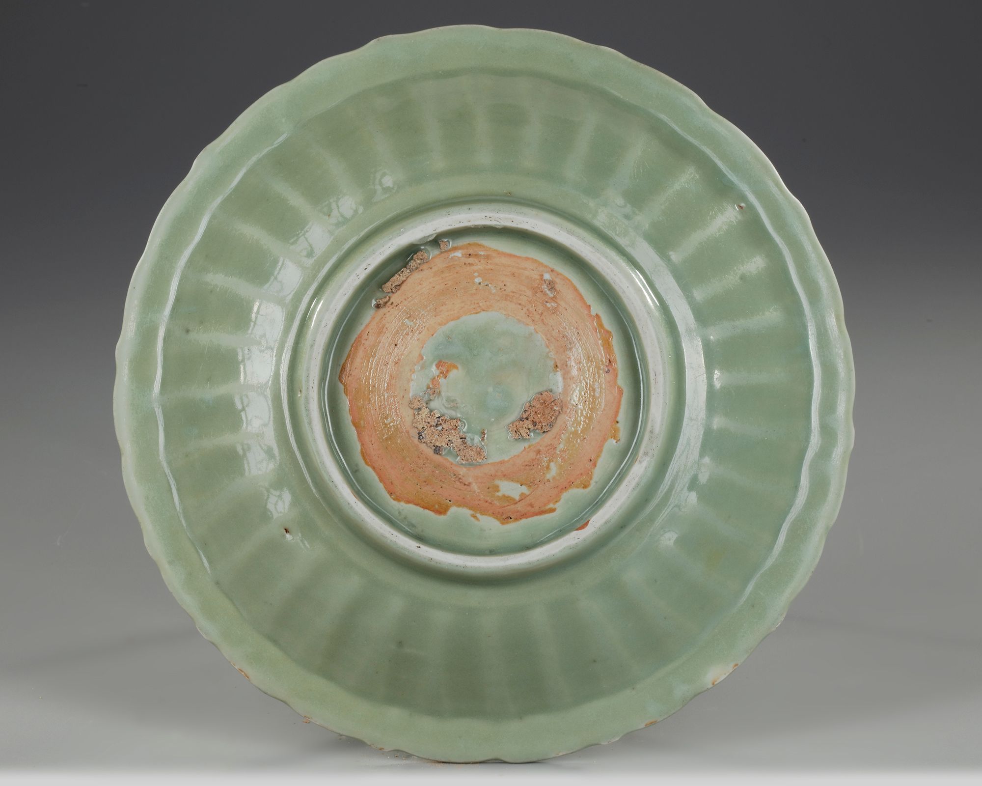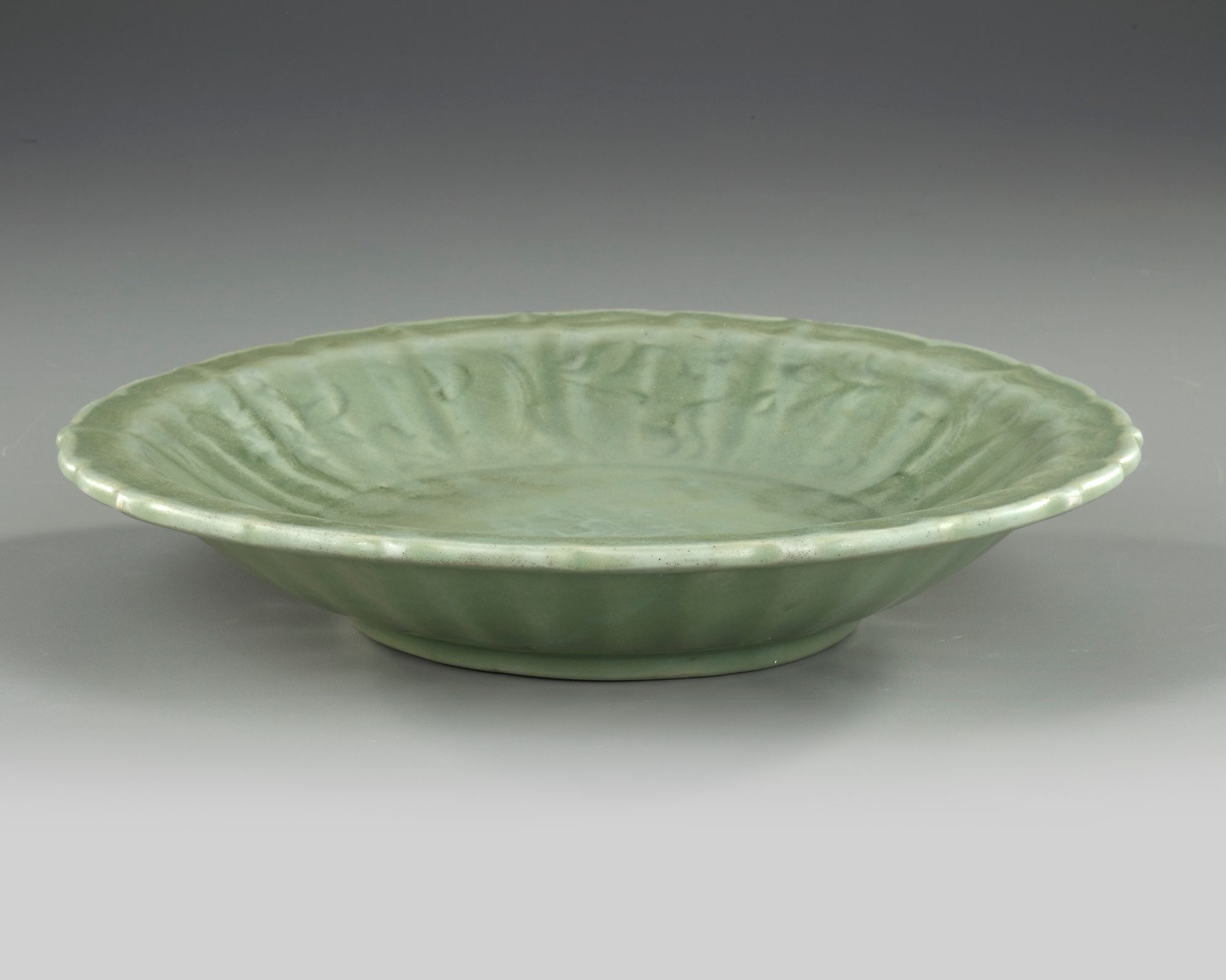 A CHINESE CELADON GLAZED DISH, POSSIBLY MING DYNASTY (1368-1644 AD)
