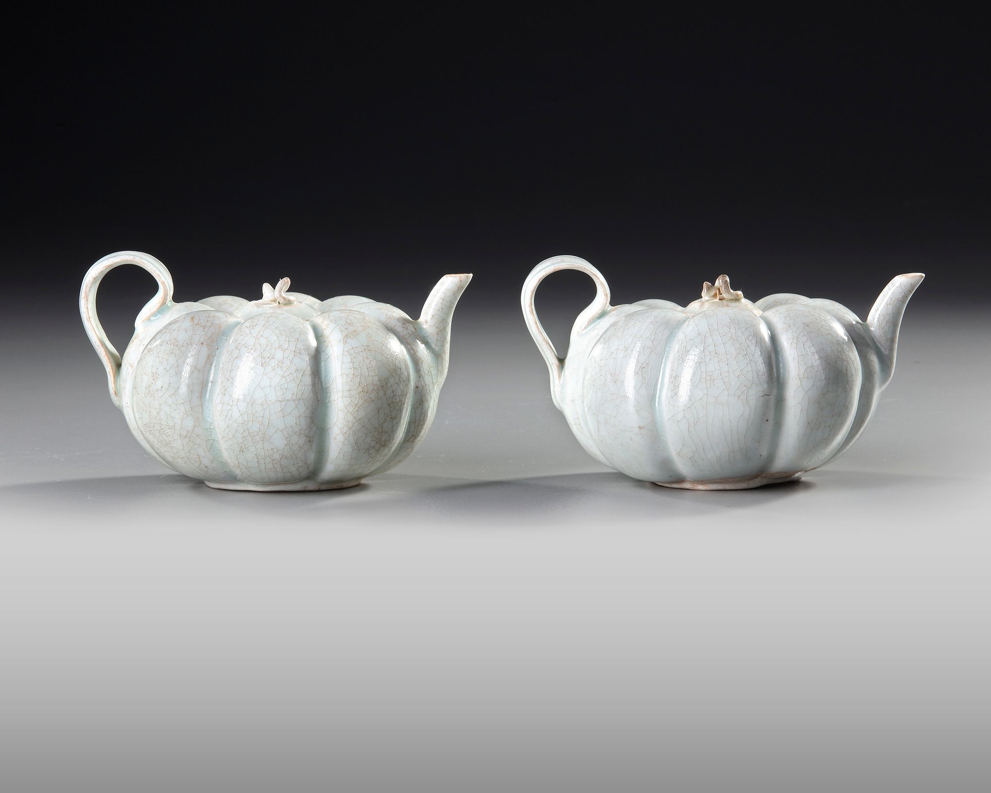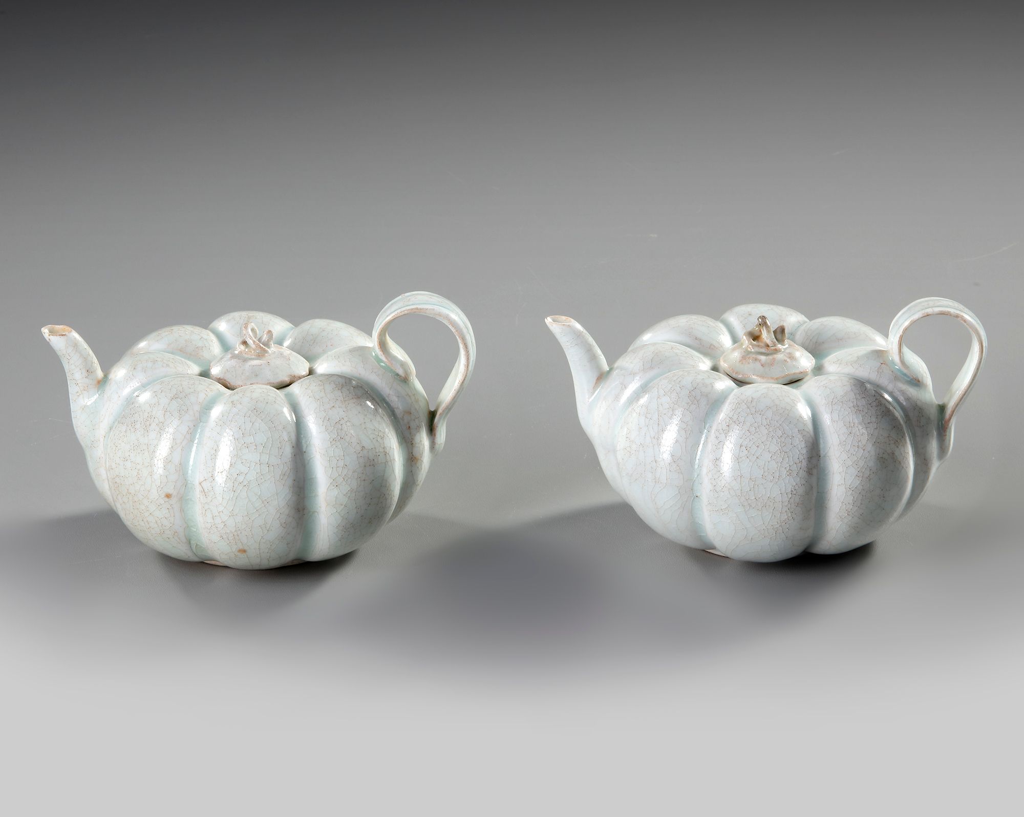 A PAIR OF CHINESE 'QINGBAI' TEAPOTS WITH COVERS, SOUTHERN SONG (1127-1279)
