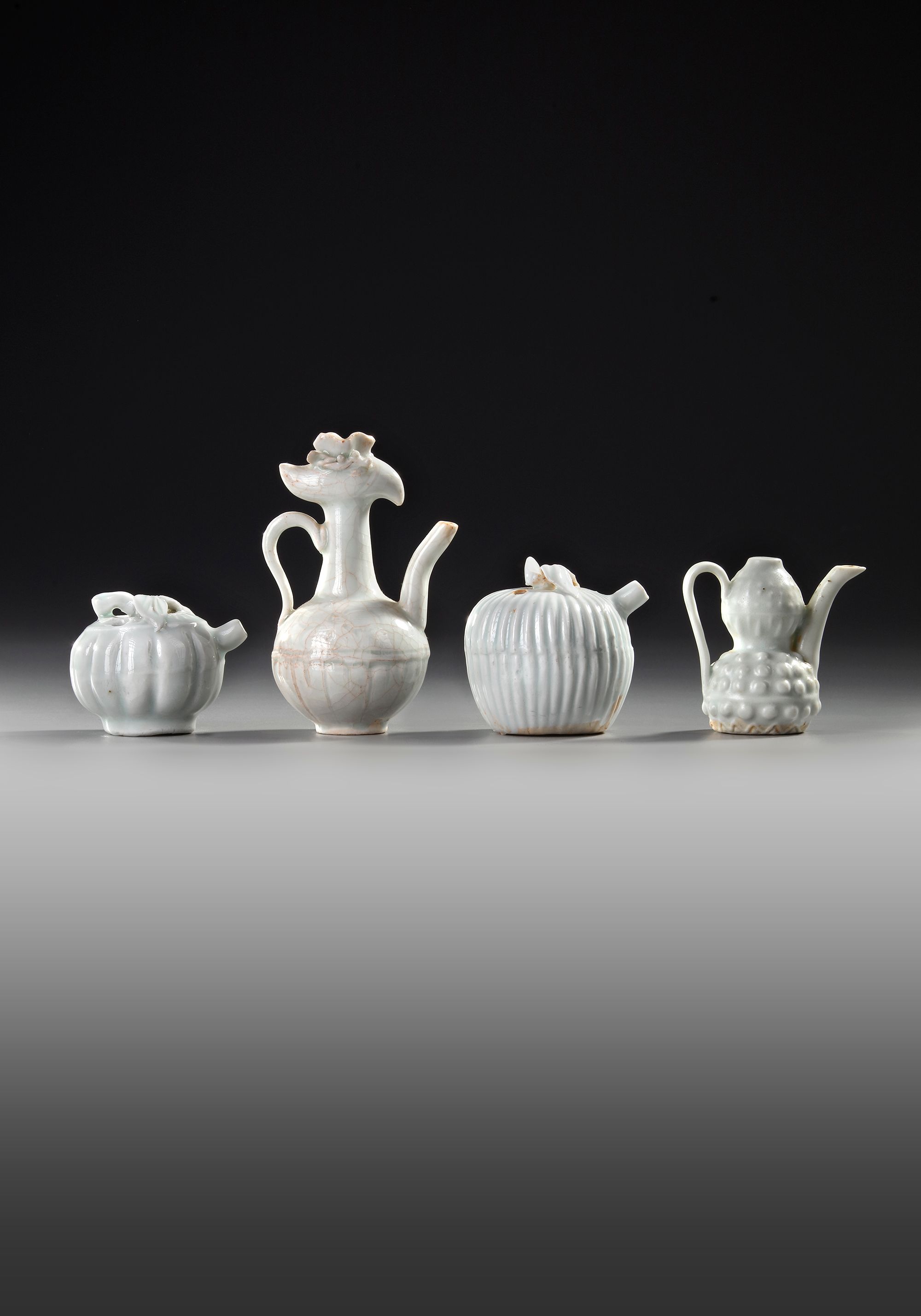 A small Chinese Qingbai water dropper in the form of an ewer with chicken head and a carved petal lappet border around the base. Height: 11 cm.