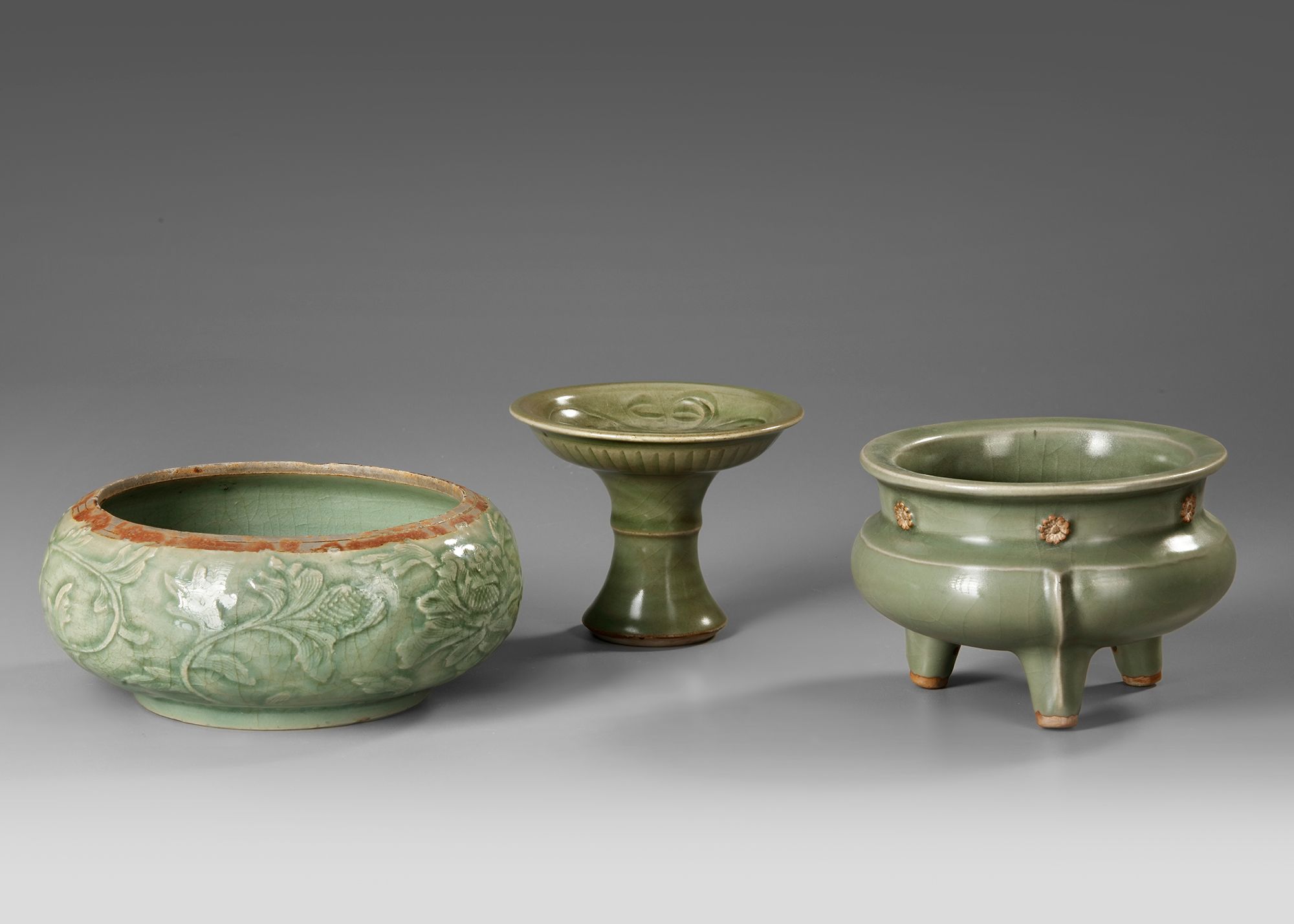 A CHINESE LONGQUAN CELADON TRIPOD CENSER, SONG DYNASTY (960-1279) OR LATER