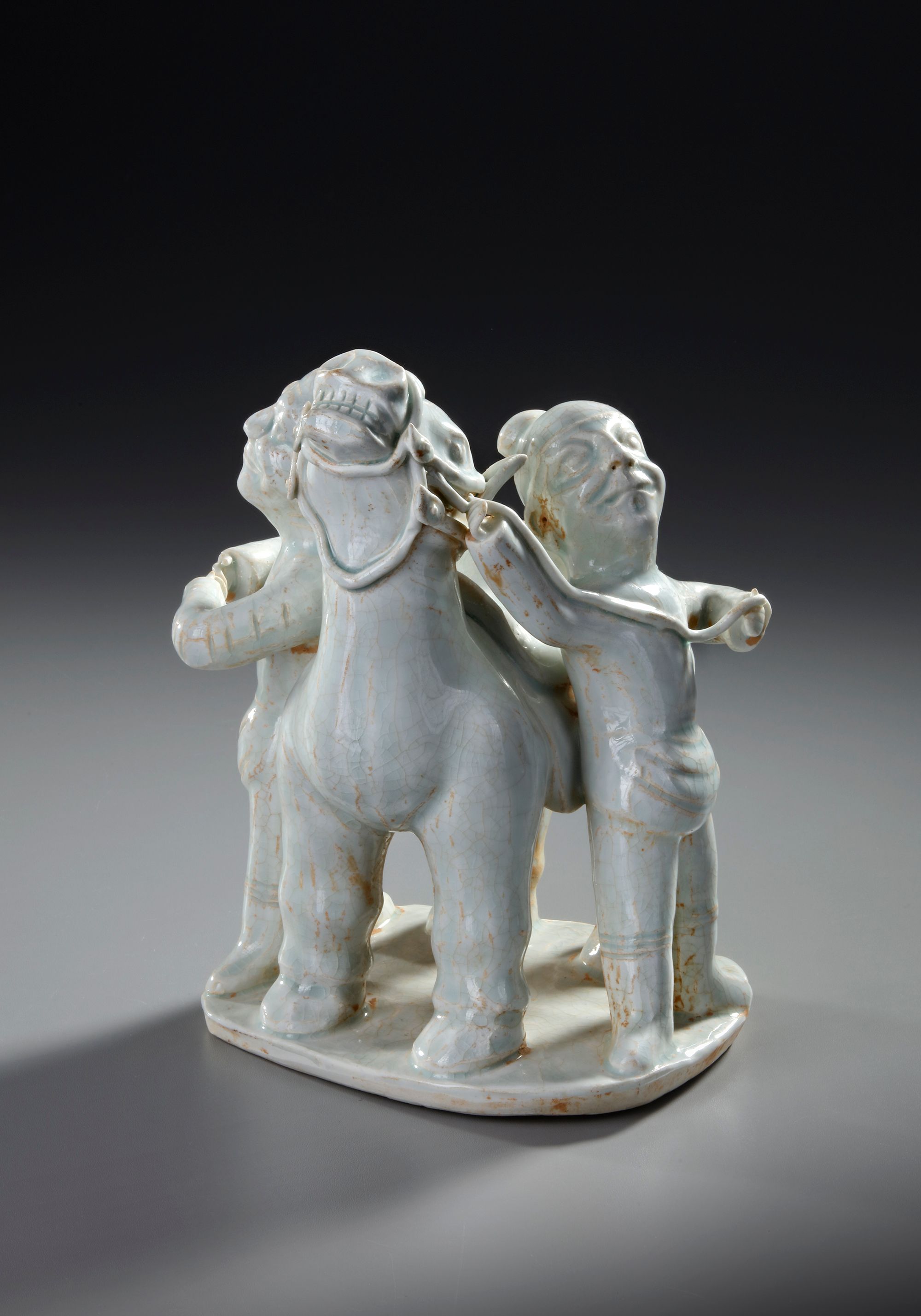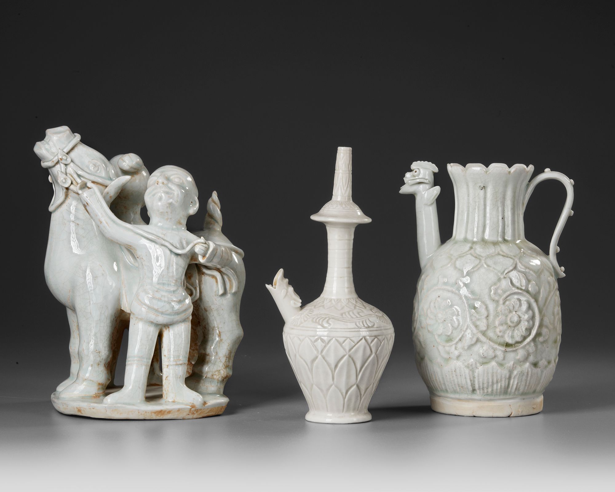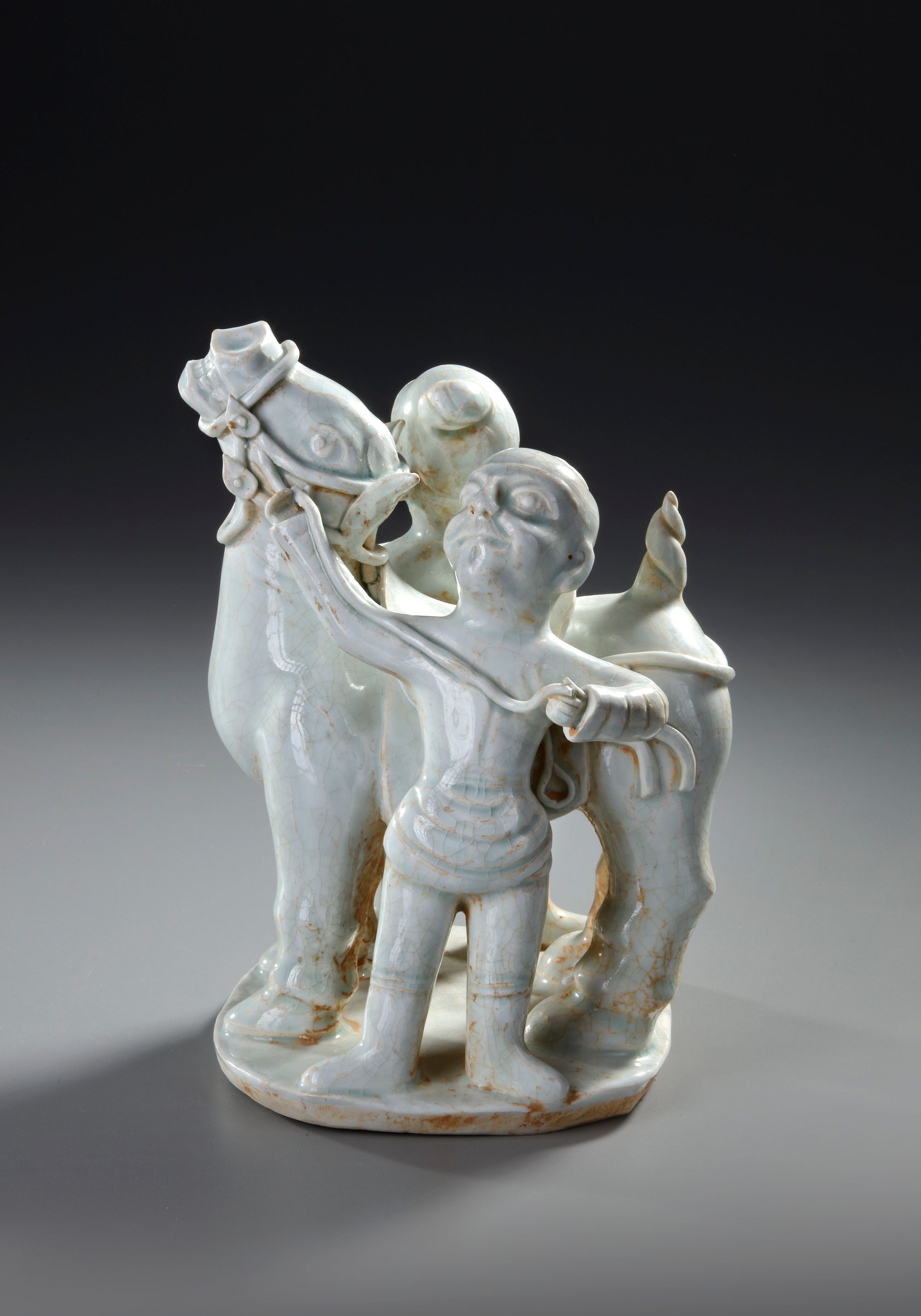 A CHINESE QINGBAI PORCELAIN HORSE WITH GROOMS, NORTHERN SONG DYNASTY (960–1127)