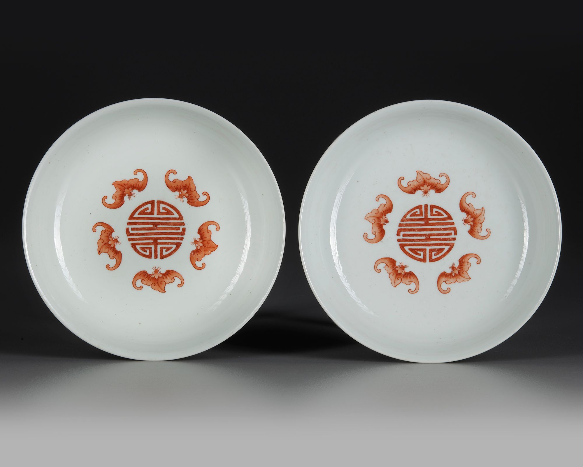 A PAIR OF CHINESE IRON-RED FU BATS DISHES, 19TH/20TH CENTURY