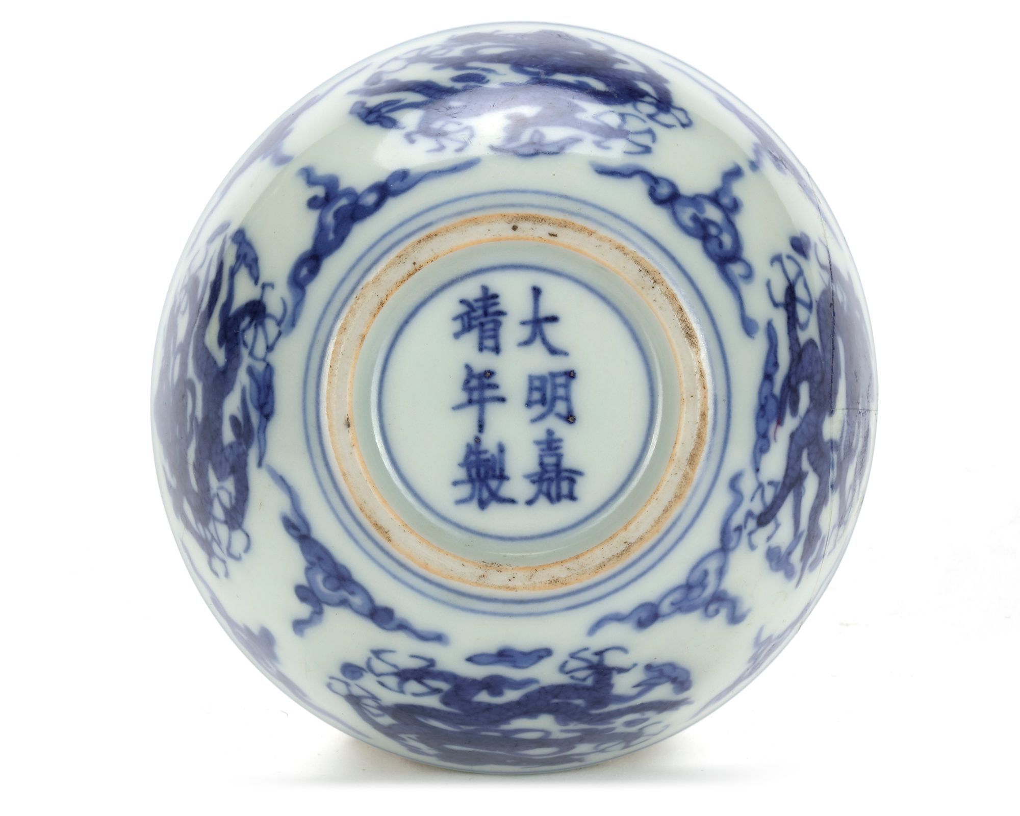 The interior with clouds, the bottom with a Chinese Jiajing six character mark.