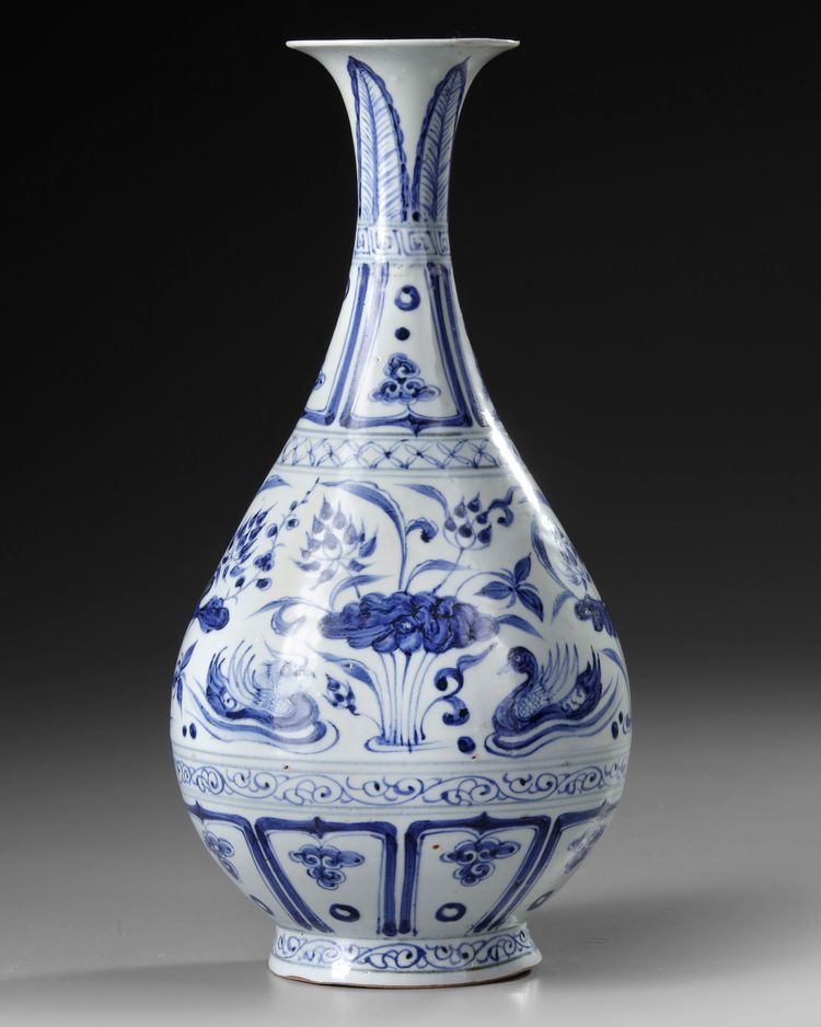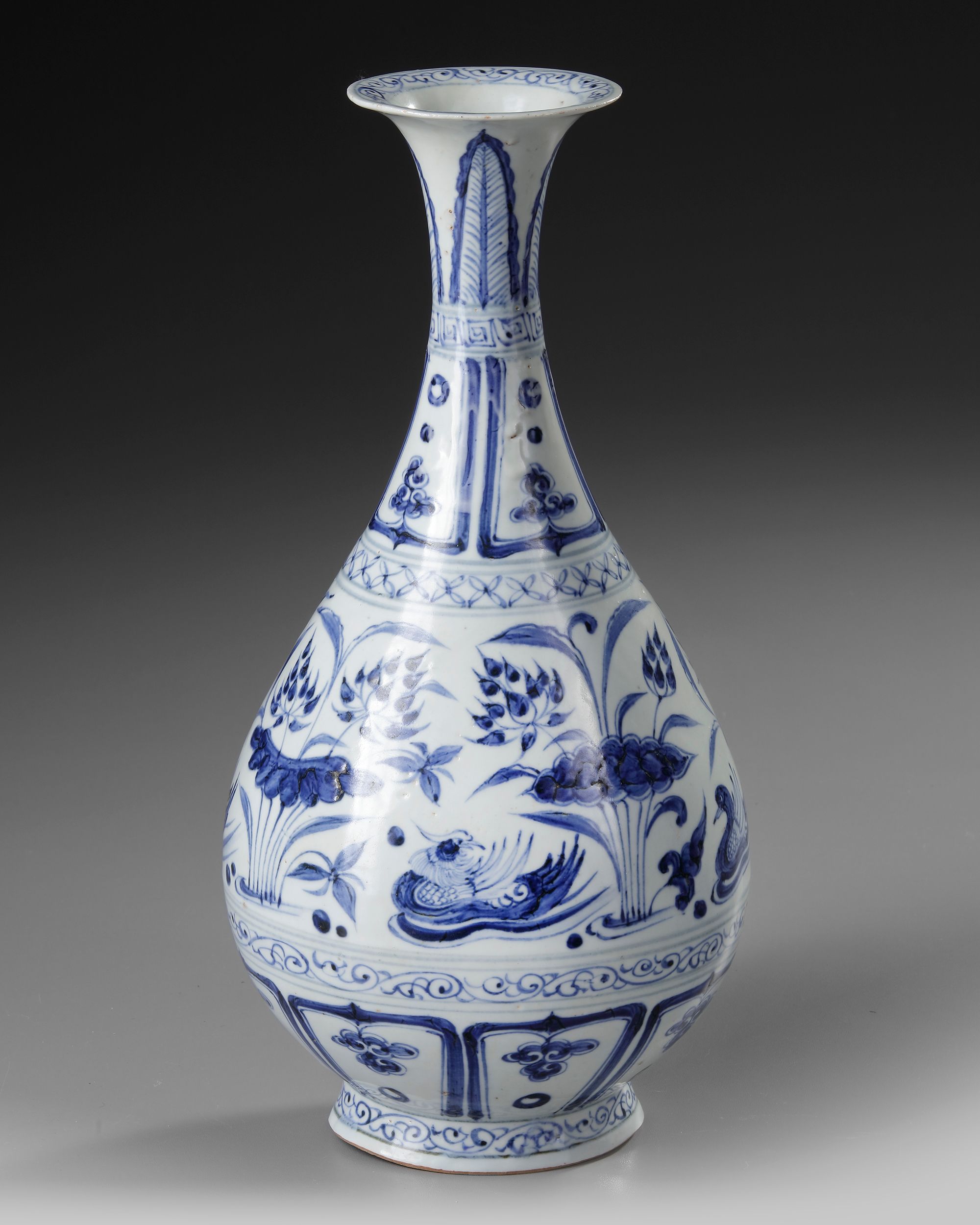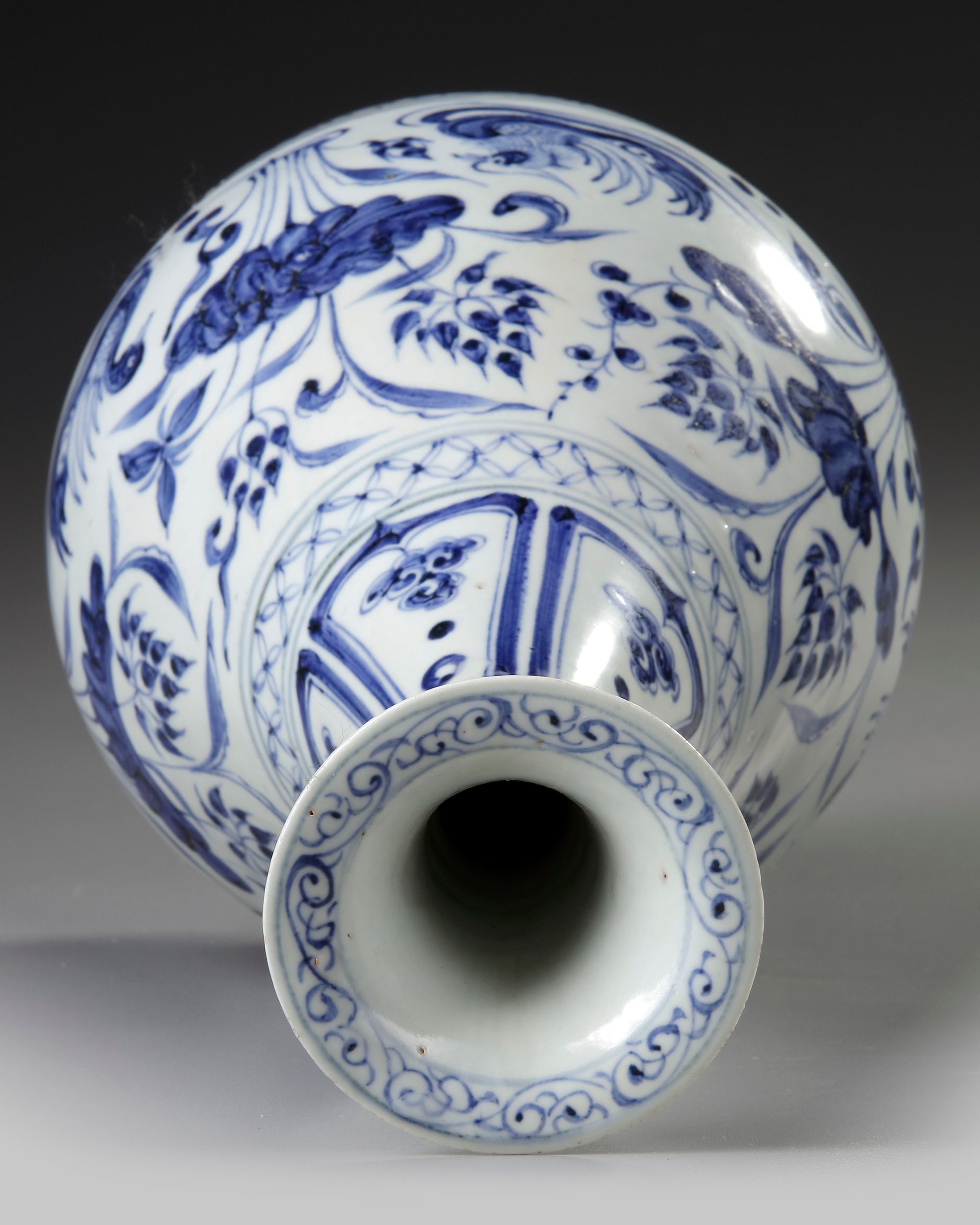 A CHINESE BLUE AND WHITE YUHUCHUNPING VASE, YUAN DYNASTY OR LATER