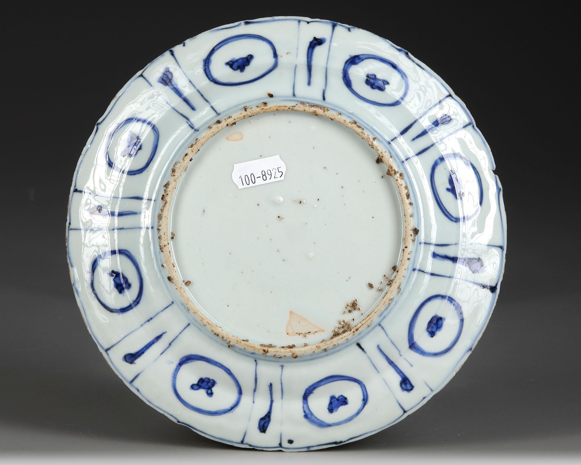 The dish is finely decorated to the centre with a star-shaped panel enclosing two birds in flight above a deer in a lake scene, all surrounded by further lappet-shaped panels enclosing alternating precious objects and peach blossoming branches separated by brocade designs. The reverse is decorated with roundels enclosing lingzhi fungus.