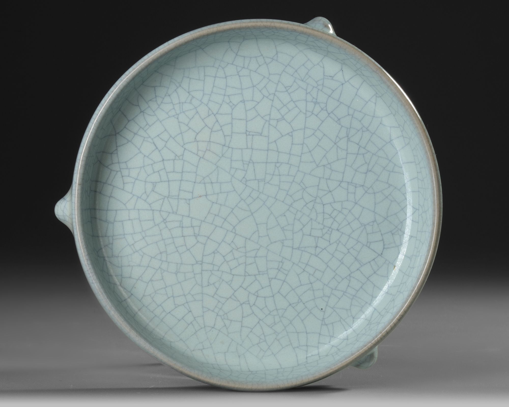 A CHINESE THREE LEGGED RU WARE WASHER, QING DYNASTY (1644–1911)