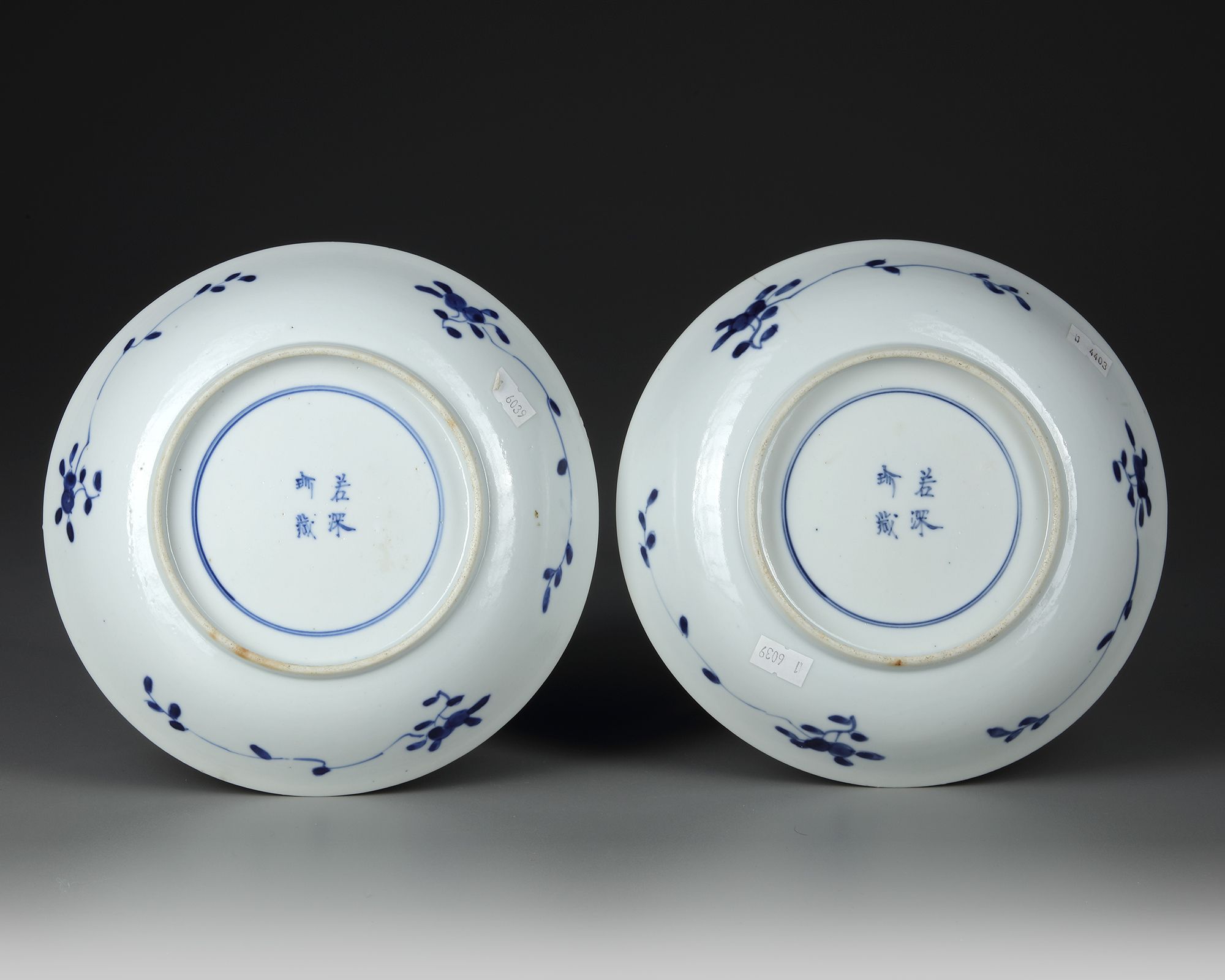 Two dishes decorated with panels enclosing a lady holding a flower and a flowering tree. Diameter: 20 cm.