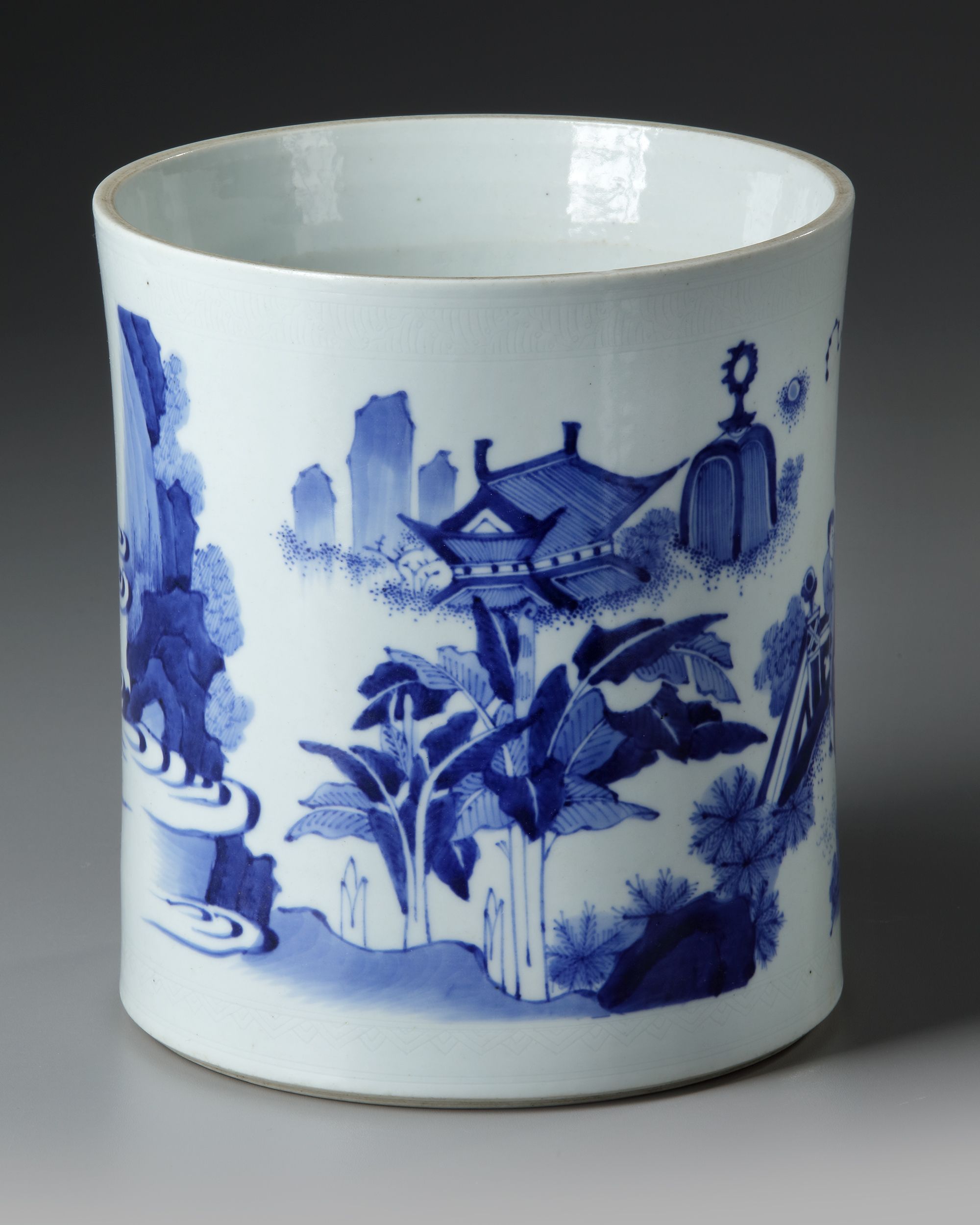 A CHINESE BLUE AND WHITE BRUSH POT, BITONG, QING DYNASTY (1644 –1911)