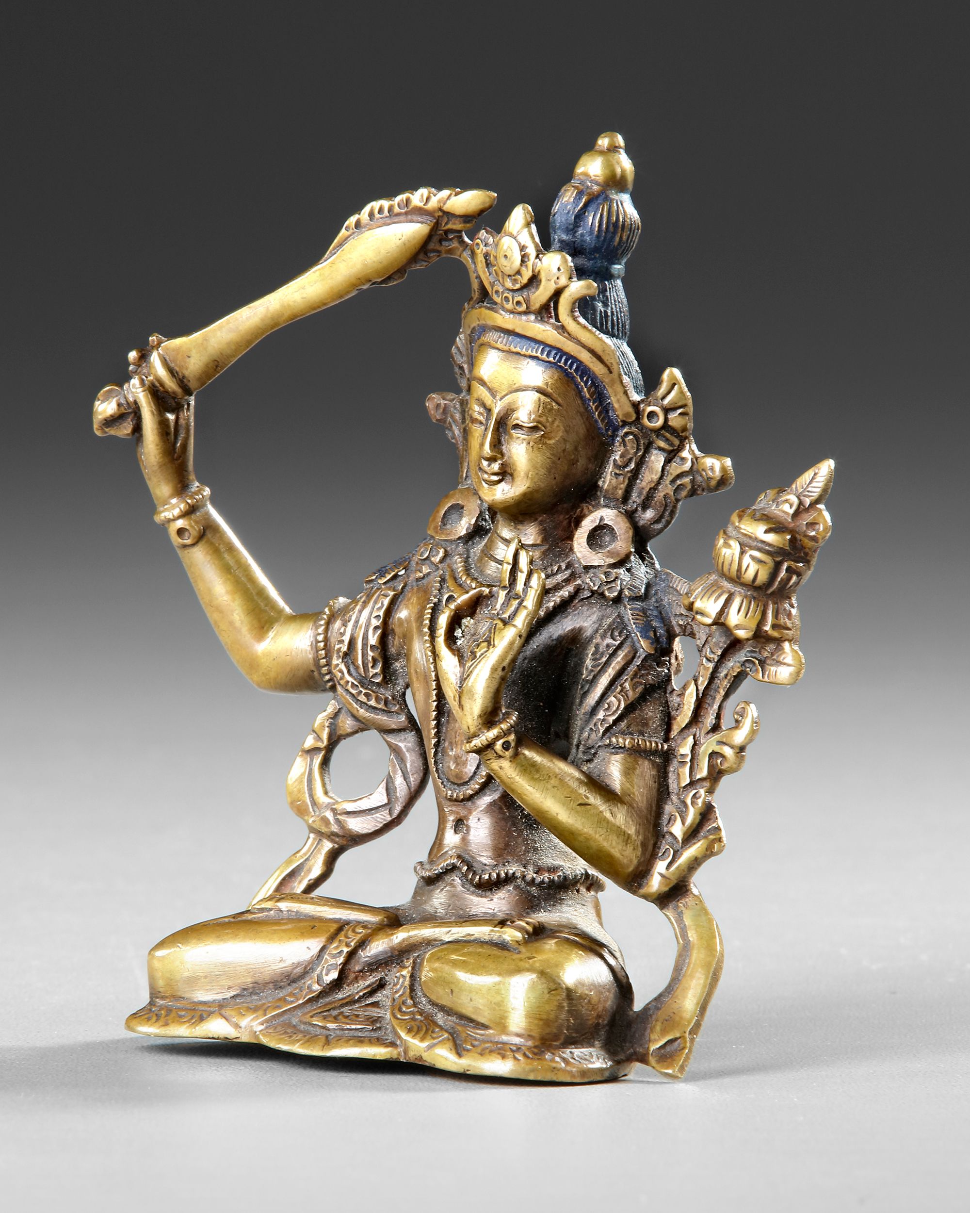 A GILT-BRONZE FIGURE OF MANJUSHRI