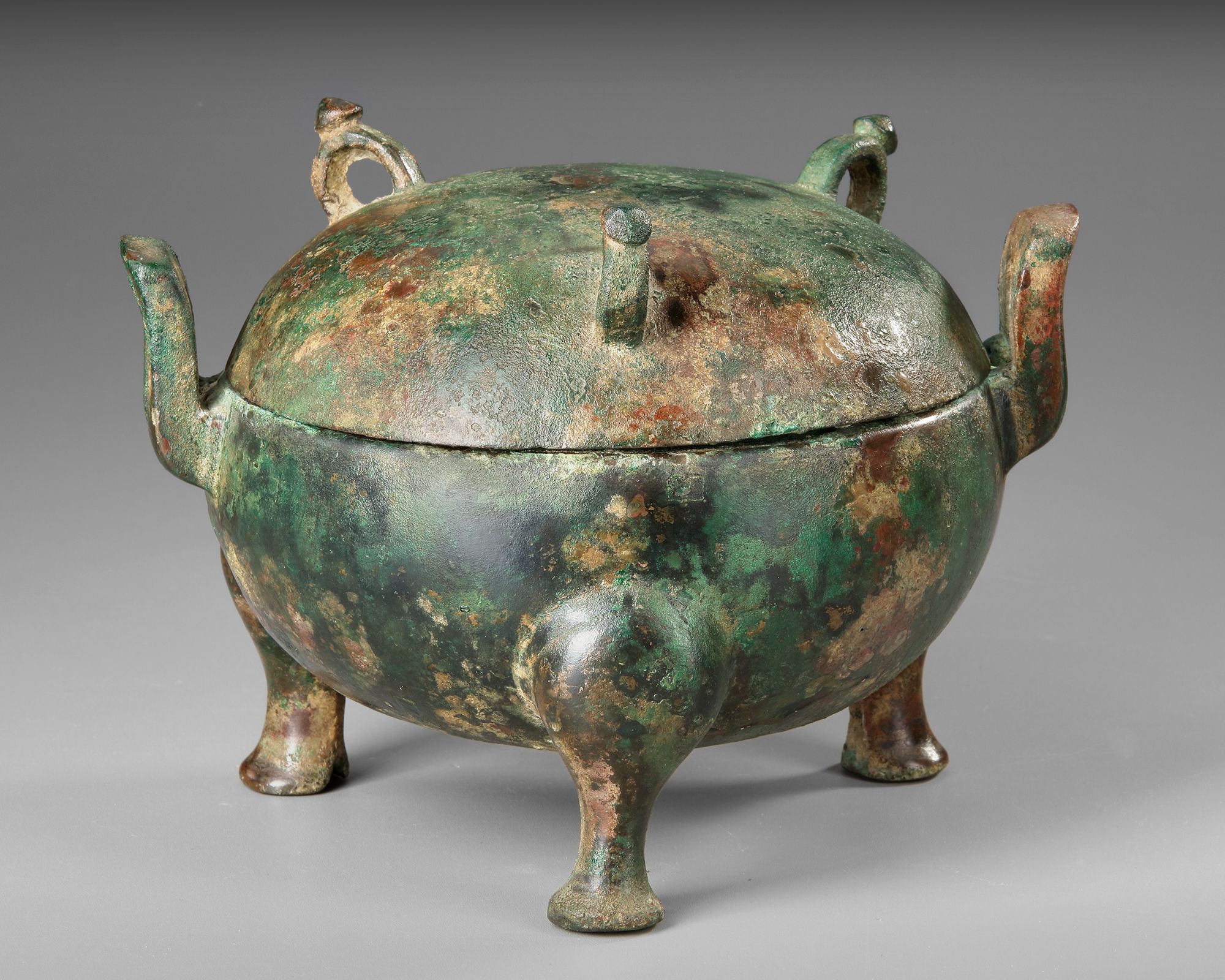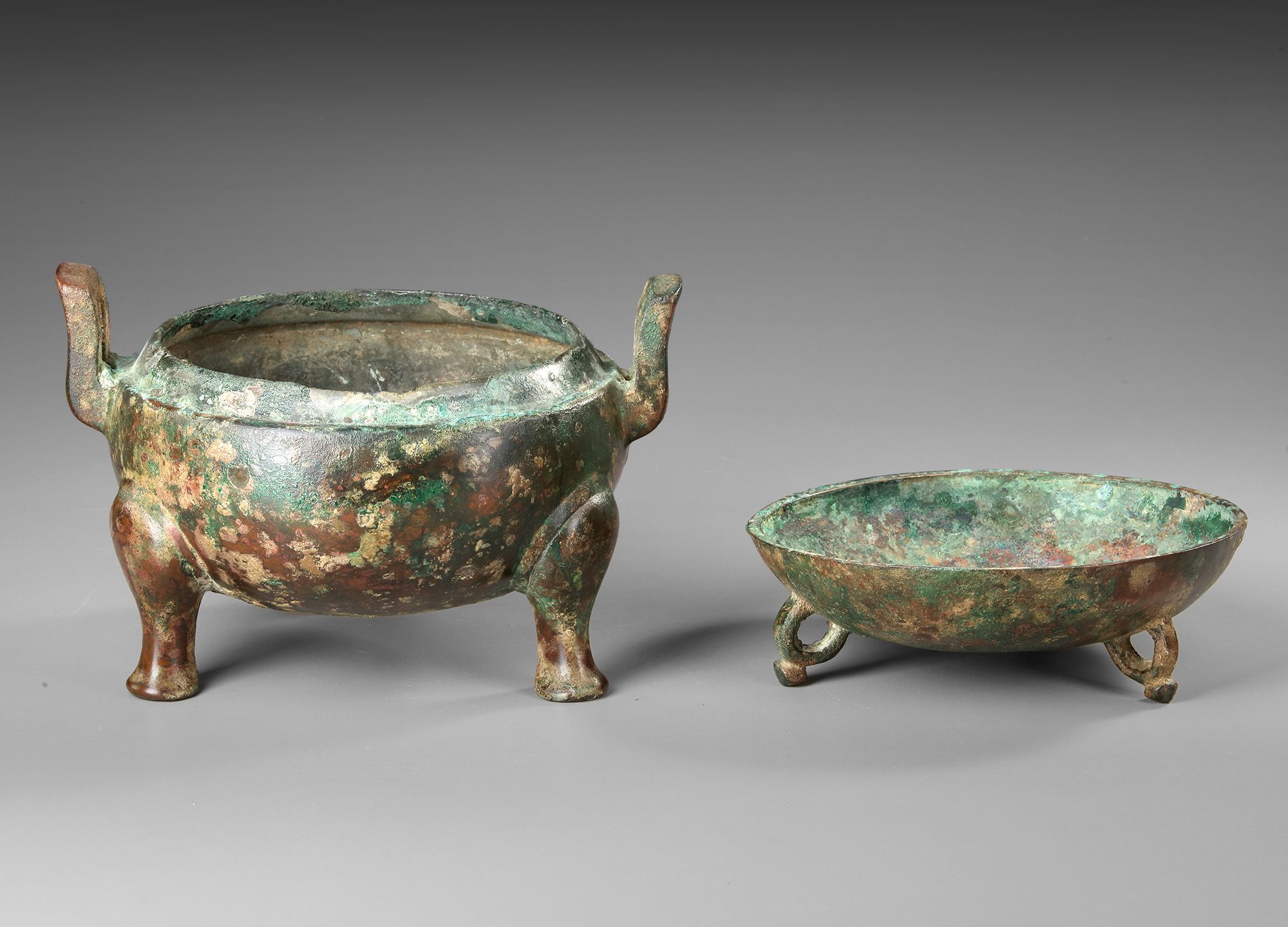 Lot 68A CHINESE BRONZE TRIPOD STORAGE VESSEL AND AN ASSOCIATED COVER, MING DYNASTY (1368-1644)
