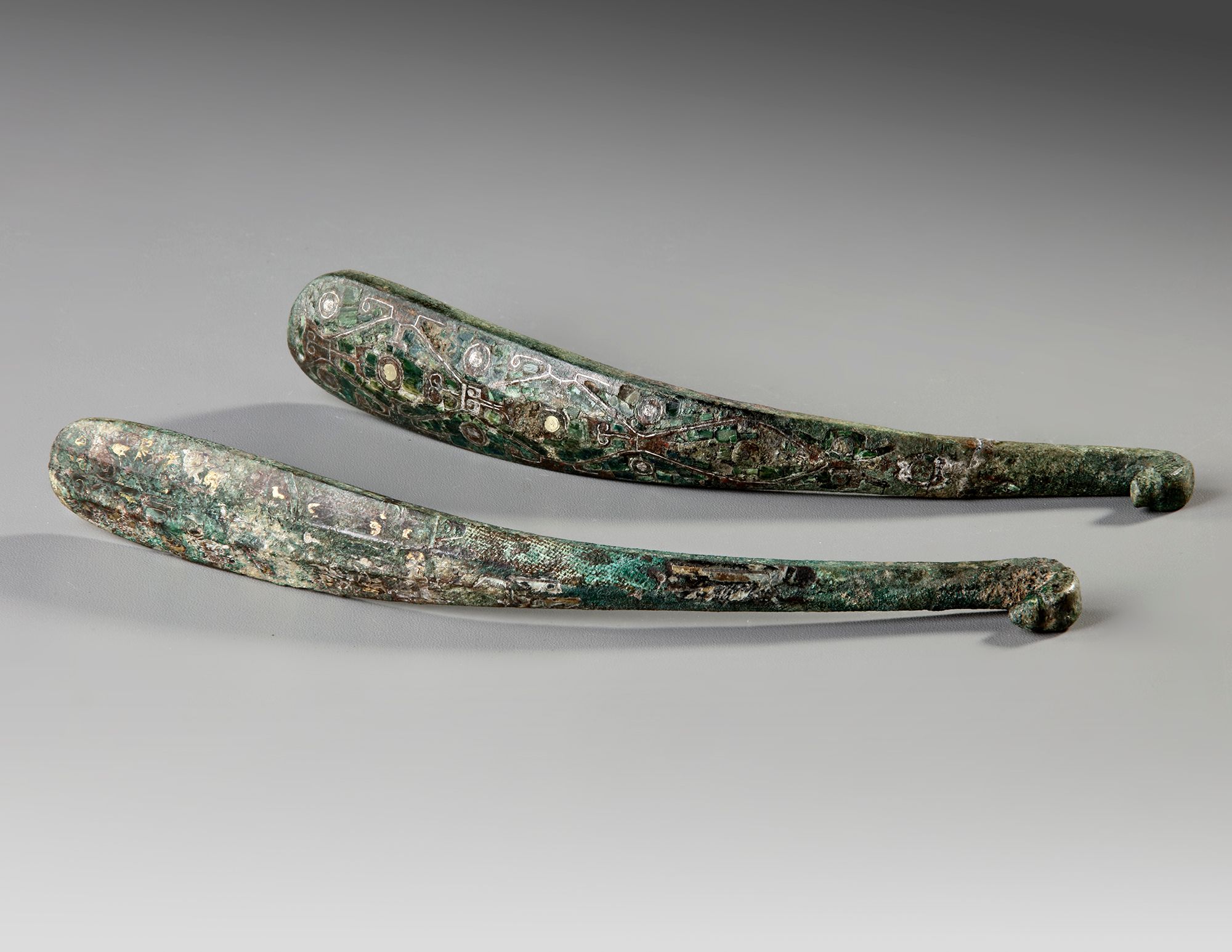 Lot 301TWO INLAID BRONZE BELT HOOKS, EASTERN ZHOU DYNASTY OR HAN DYANSTY