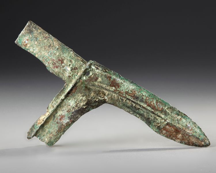 Cast with the elongated yuan divided by a raised ridge in the middle of each side and extending downward to form the hu. Length: 22 cm